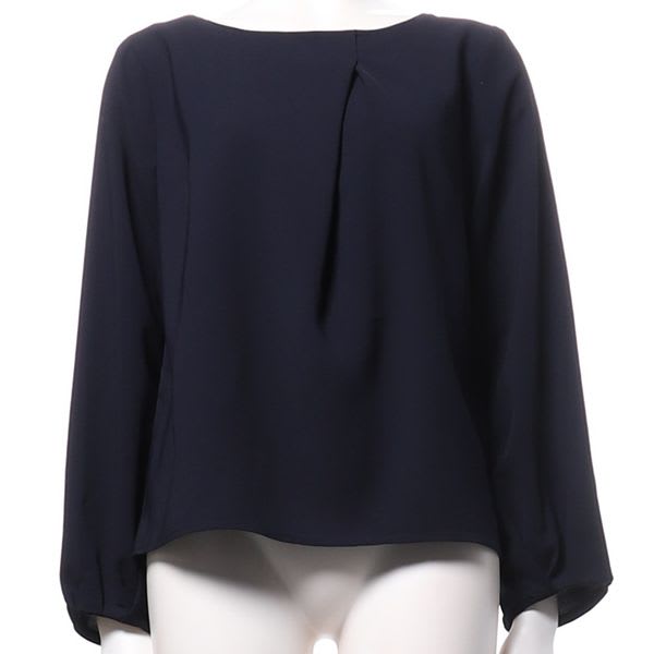 ネックラインのタックがポイントのブラウス。セミタイトスカートを合わせてレディライクに、スラックスを合わせてオフィススタイルも良いですね。