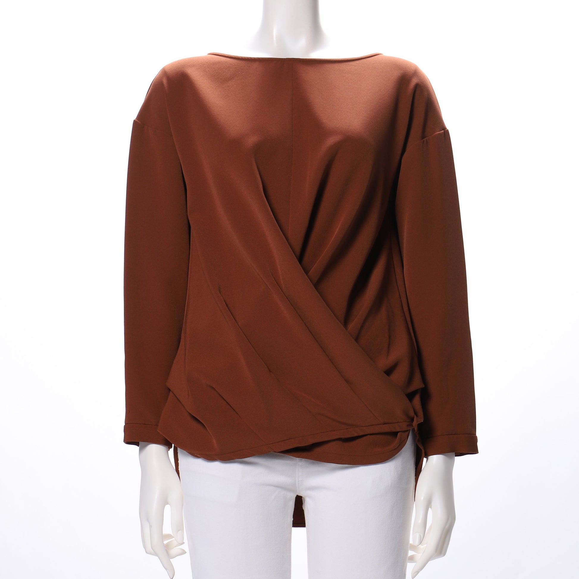 カシュクール風デザインのカットソー。タイトスカートとパンプスを合わせて女性らしい着こなしに、デニムパンツとフラットシューズを合わせてカジュアルな着こなしも素敵ですよ◎