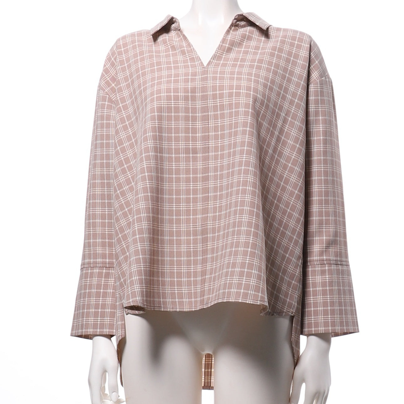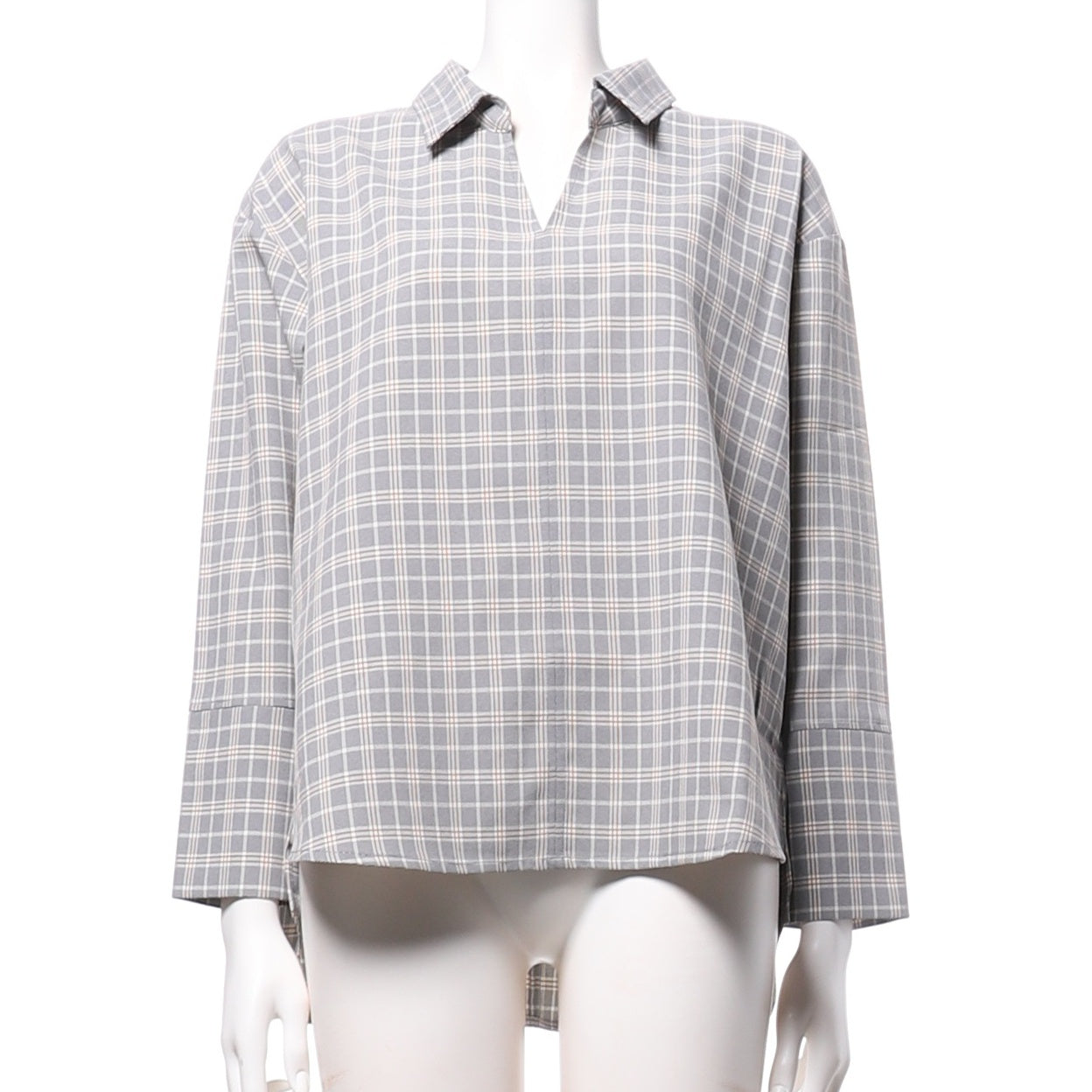 チェック柄スキッパーネックブラウス