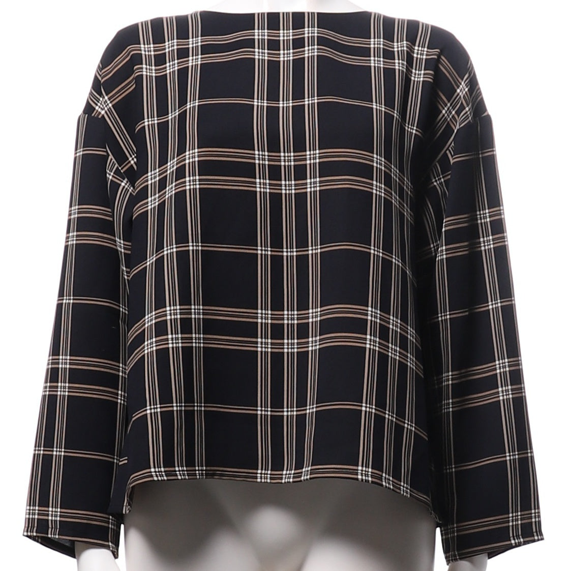 バックボタンチェック柄ブラウス
