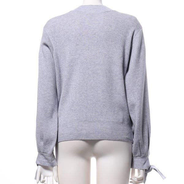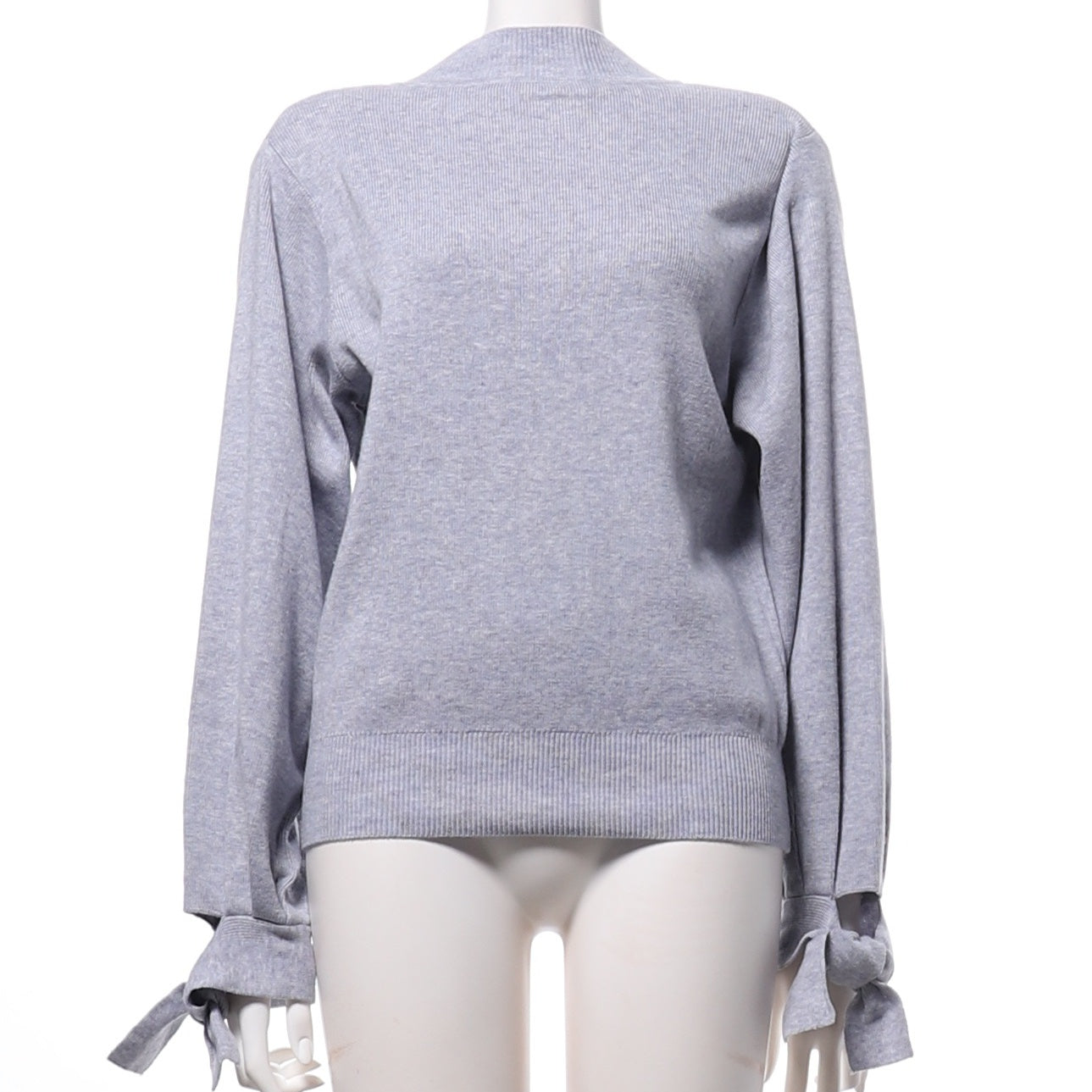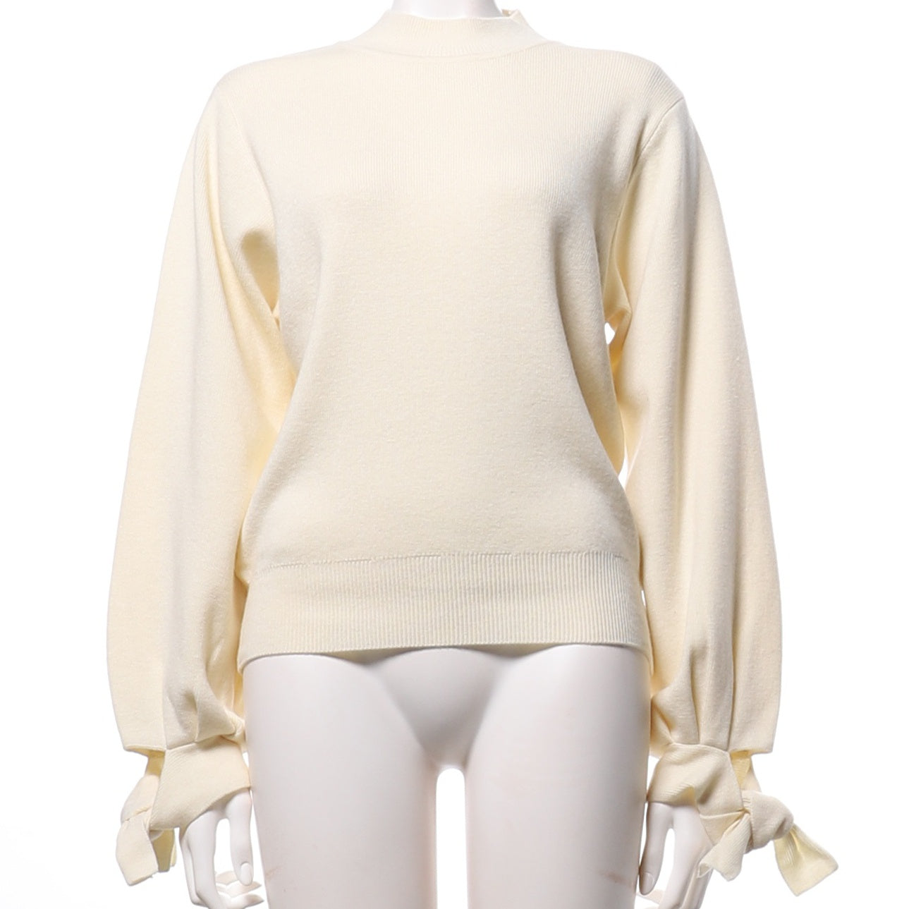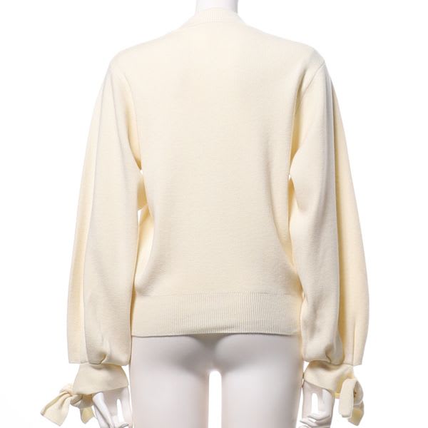 お袖の結びデザインがポイントのニットは、デニムパンツを合わせてカジュアルスタイルに、フレアスカートを合わせてフェミニンスタイルも◎ですよ。