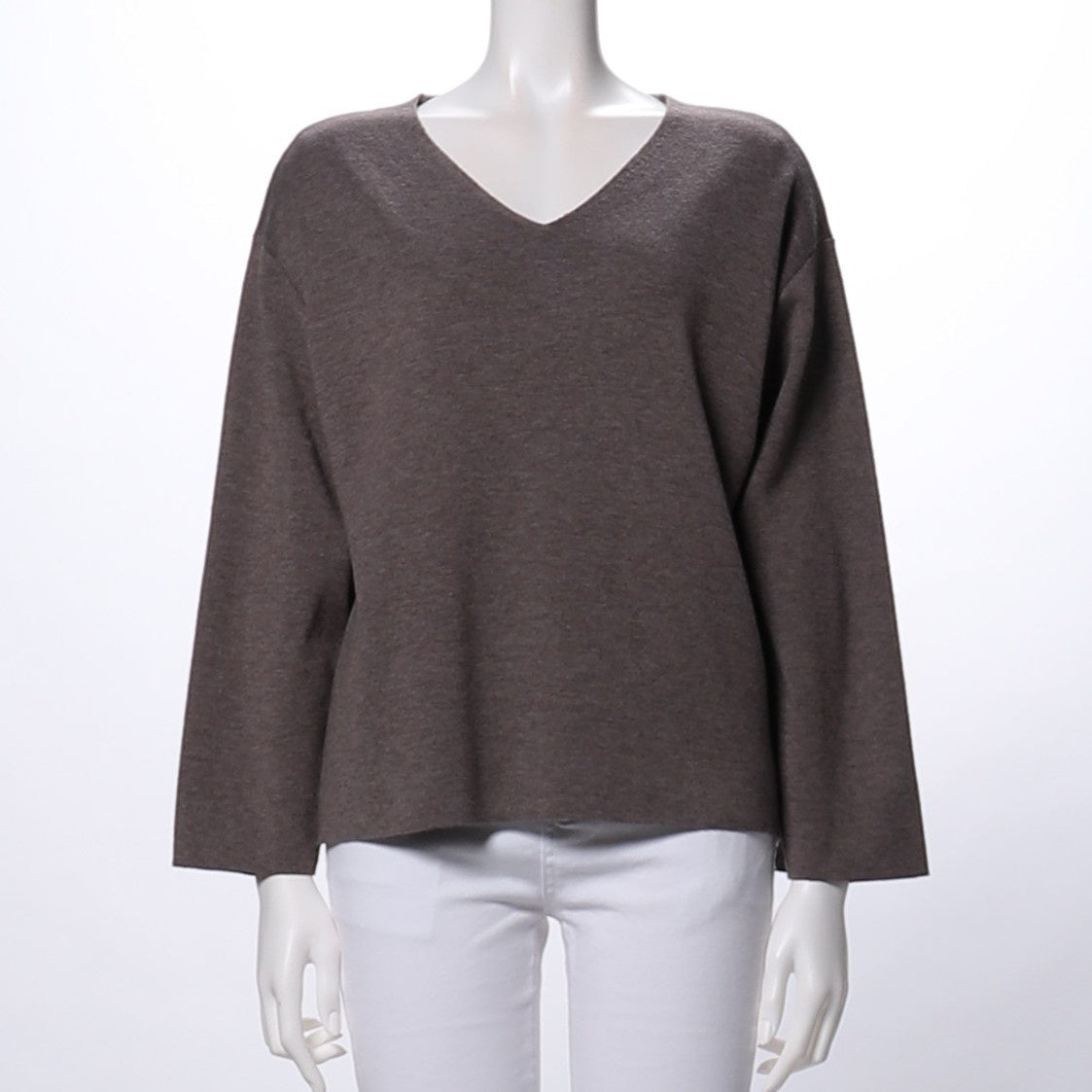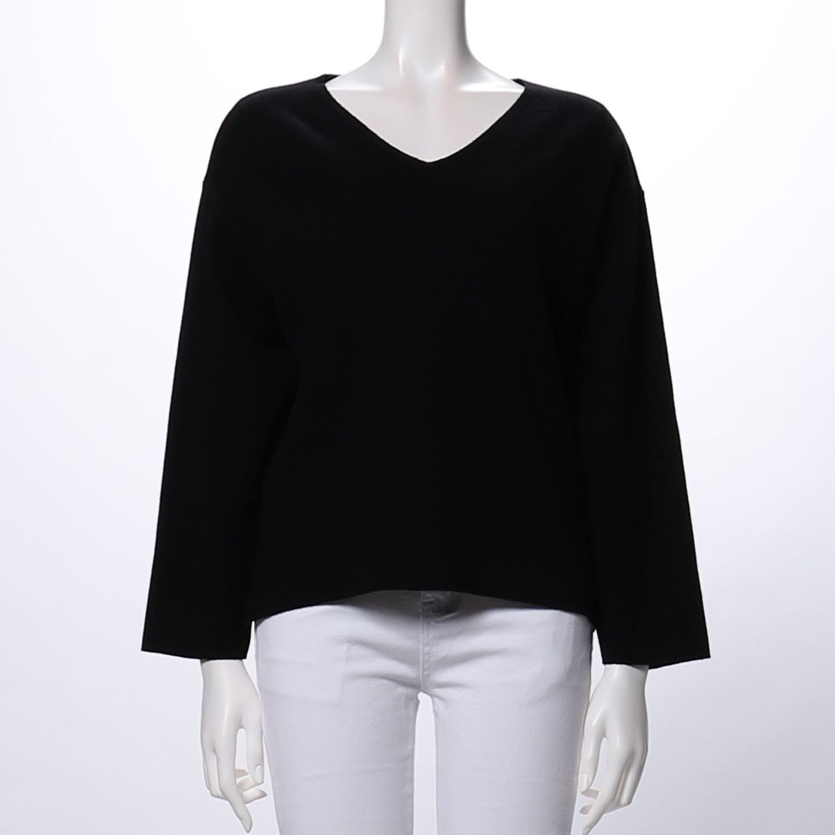 すっきりとしたVネックのドロップショルダーニットは、デニムパンツを合わせてカジュアルな着こなしに、タイトスカートを合わせてレディライクな着こなしも◎ですよ。