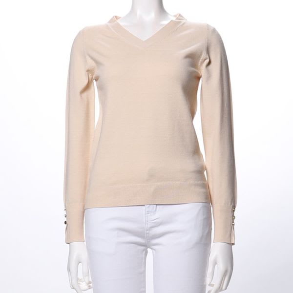 袖口のデザインがポイントのVネックニット。フレアスカートを合わせてフェミニンコーデに、デニムを合わせてカジュアルに着こなしても良いですね。