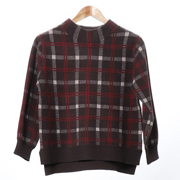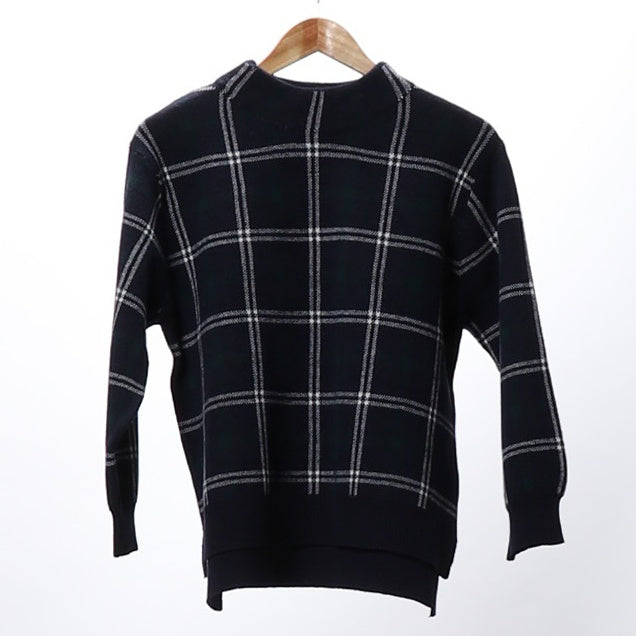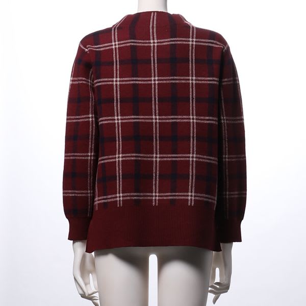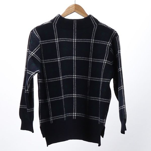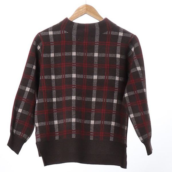 ボトムスの種類を選ばない合わせやすいチェック柄ニット。ワイドパンツと合わせてカジュアルに着こなしたり、タイトスカートと合わせてきれいめカジュアルスタイルに仕上げてもいいですね。