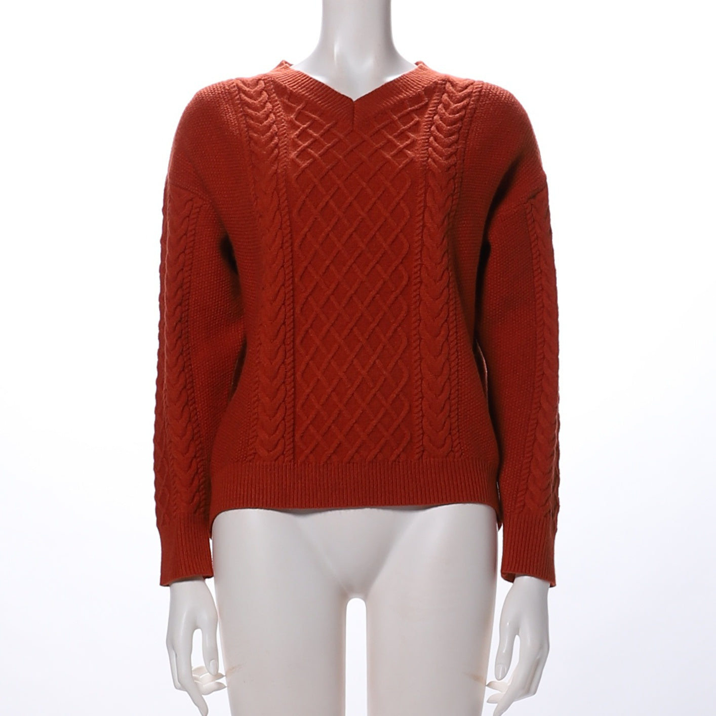 アラン模様がポイントのニット。テーパードパンンツと合わせてきれいめカジュアルコーデにしてみたり、フレアスカートと合わせて大人フェミニンなコーデにしてみてもいいですね。