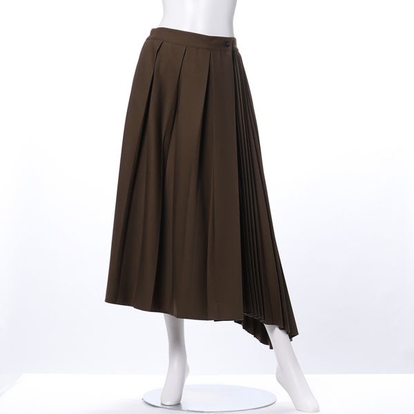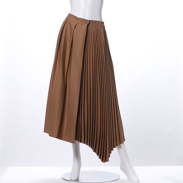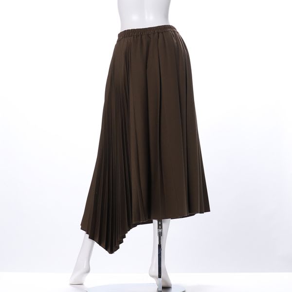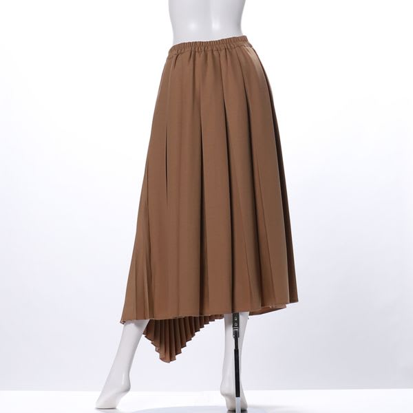 イレギュラーヘムのプリーツ切り替えスカート。コーディネートにアクセントをプラスしてくれます。シャツカラーブラウスを合わせてスタイリッシュに着こなしても、タイトめなニットを合わせて大人カジュアルスタイルも良いですね。