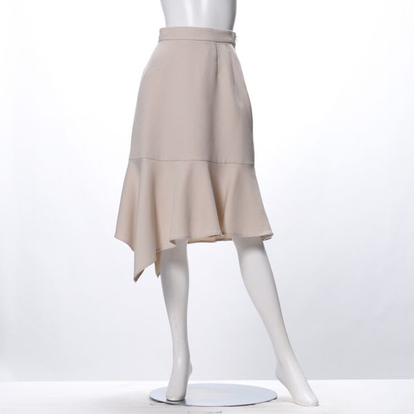 アシンメトリーヘムデザインのトランペットスカート。コーデにアクセントをプラスしてくれるアイテムです。ギャザーネックブラウスを合わせてきれいめコーデに、フレアスリーブニットを合わせてきれいめカジュアルスタイルも良いですね。