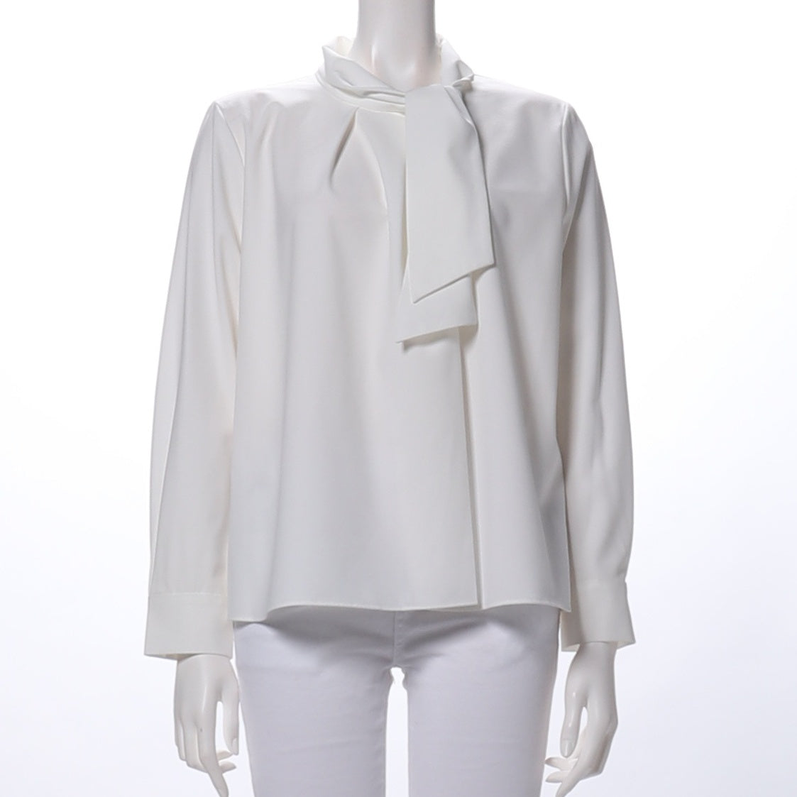 きれいめスタイルにぴったりのボウタイブラウス。テーパードパンツと合わせてスタイリッシュに着こなしたり、フレアスカートと合わせてお呼ばれコーデにすることもできますよ。