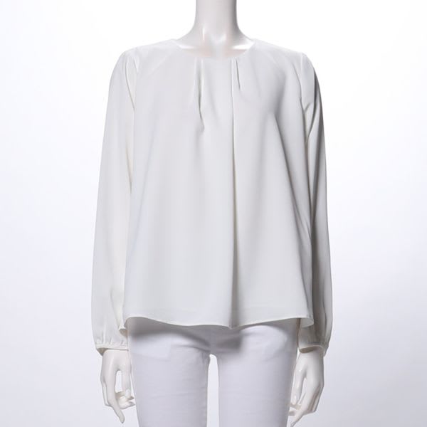 フロントのタックデザインがポイントのブラウス。レースタイトスカートを合わせてレディライクなスタイルに、テーパードパンツを合わせて綺麗めなスタイルもおすすめです!