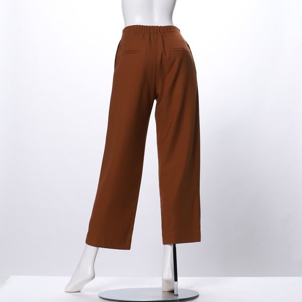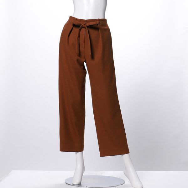 ウエストのリボンが女性らしい印象のストレートパンツ。襟付きブラウスを合わせてオフィスカジュアルスタイルに、オーバーサイズニットを前だけインしてカジュアルに着こなしても素敵です。