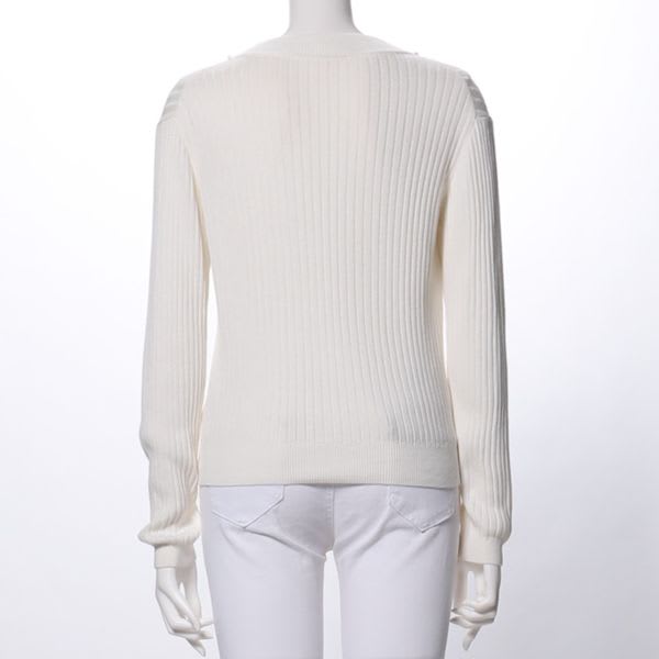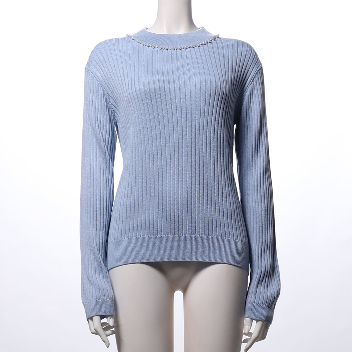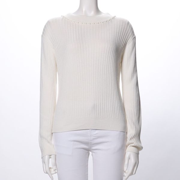 ネックラインのパールが女性らしいデザインのニット。タイトスカートと合わせてきれいめコーデにしてみたり、デニムと合わせて大人カジュアルスタイルに着回すのもおすすめですよ。