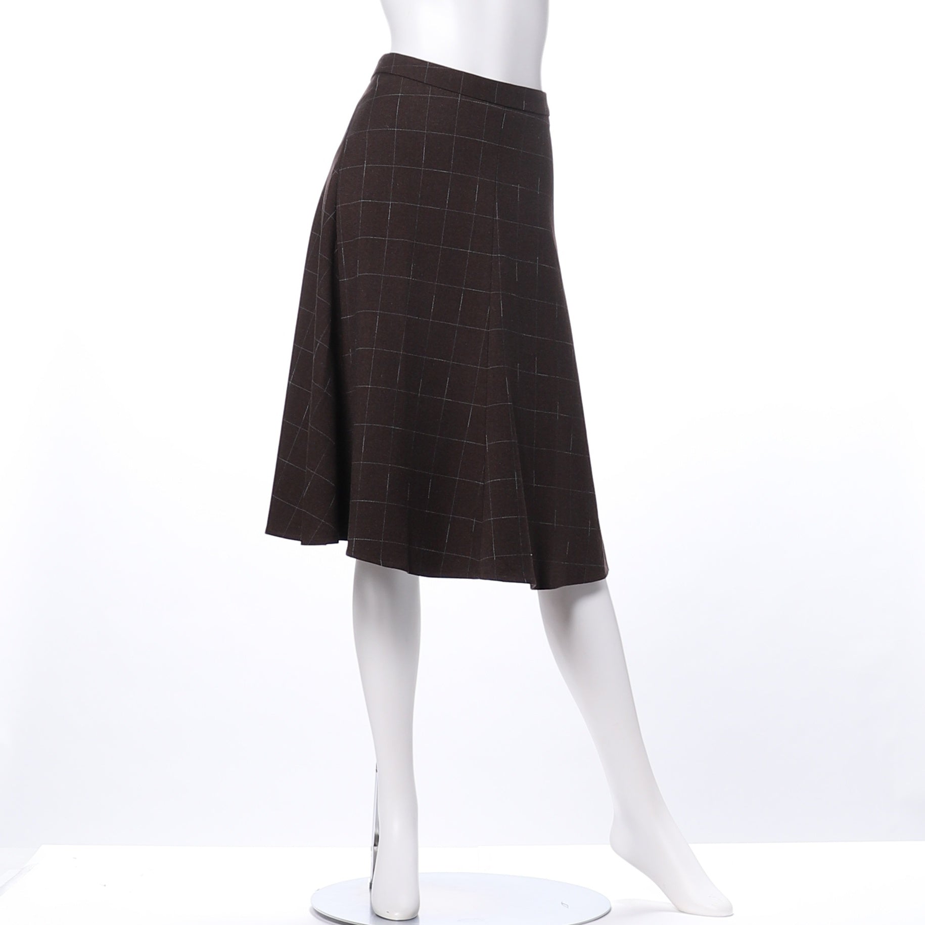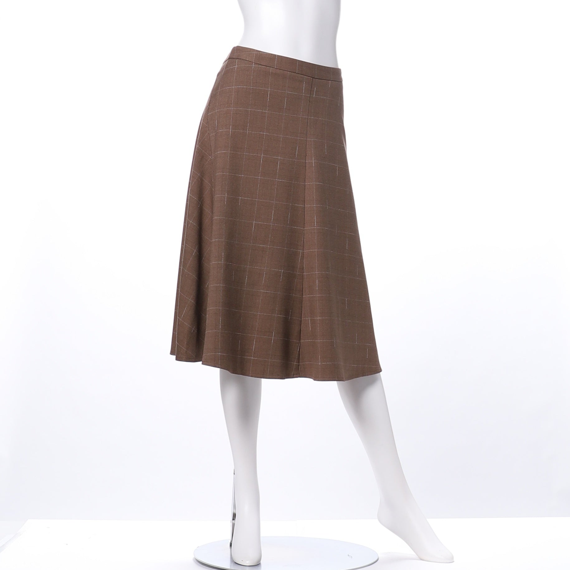 ウィンドウペンチェック柄のフレアスカート。ブラウスとパンプスを合わせて綺麗めなスタイルに、ニットとスニーカーでカジュアルスタイルもいいですね◎