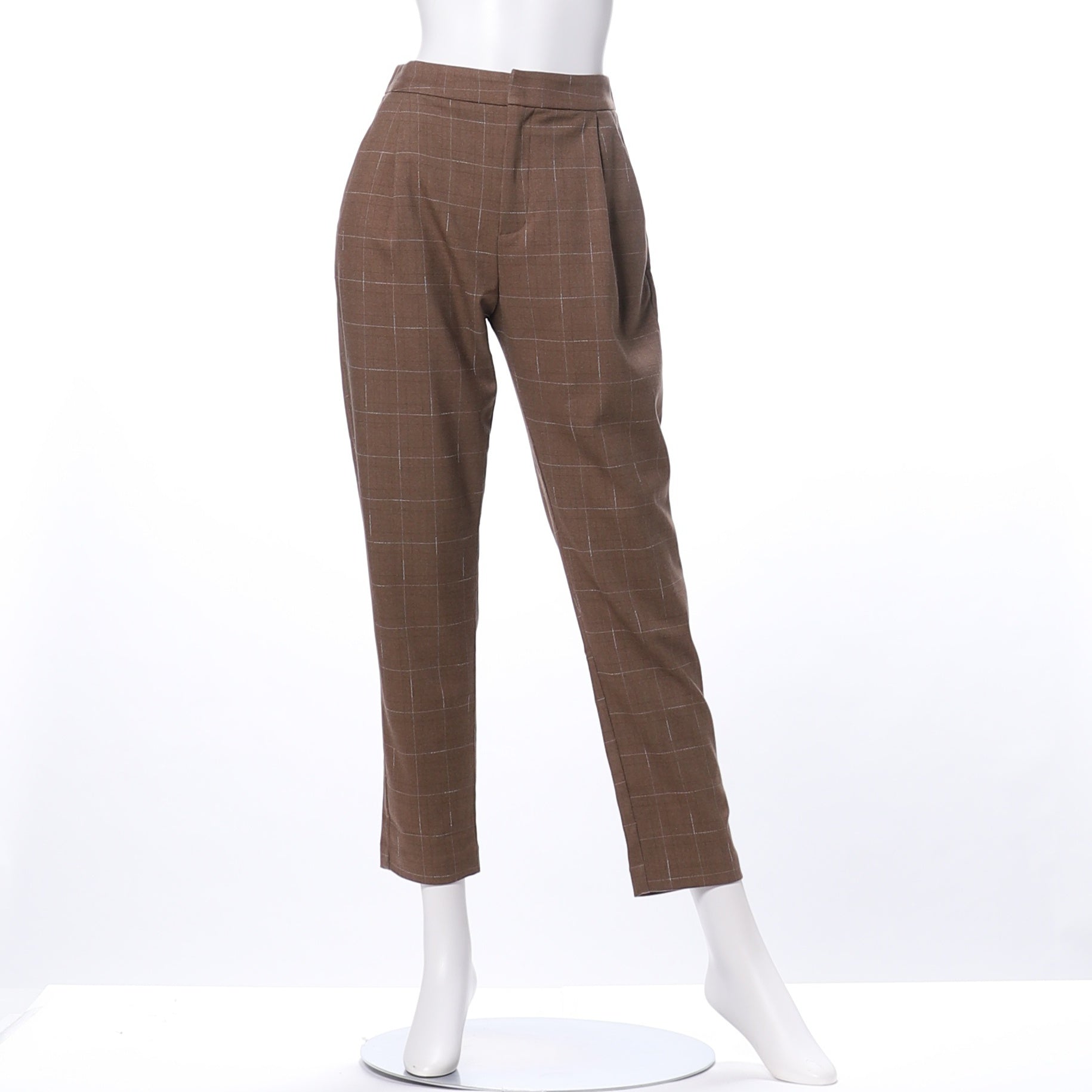 ウィンドウペン柄のテーパードパンツです。タートルネックのニットにパンプスを合わせてキレイめスタイルに、ざっくりニットにスニーカーでカジュアルコーデも◎。