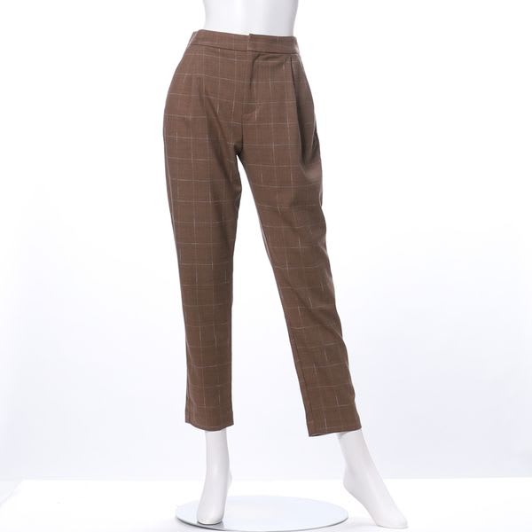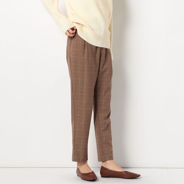 ウィンドウペン柄のテーパードパンツです。タートルネックのニットにパンプスを合わせてキレイめスタイルに、ざっくりニットにスニーカーでカジュアルコーデも◎。