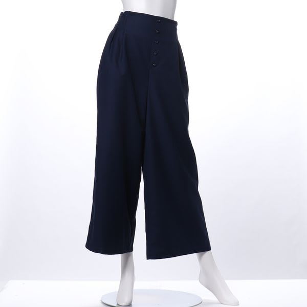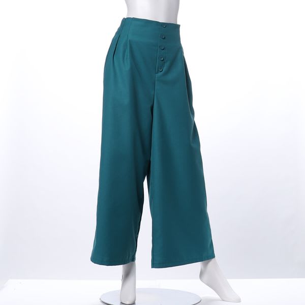 くるみボタンサイドファスナー付きワイドパンツ