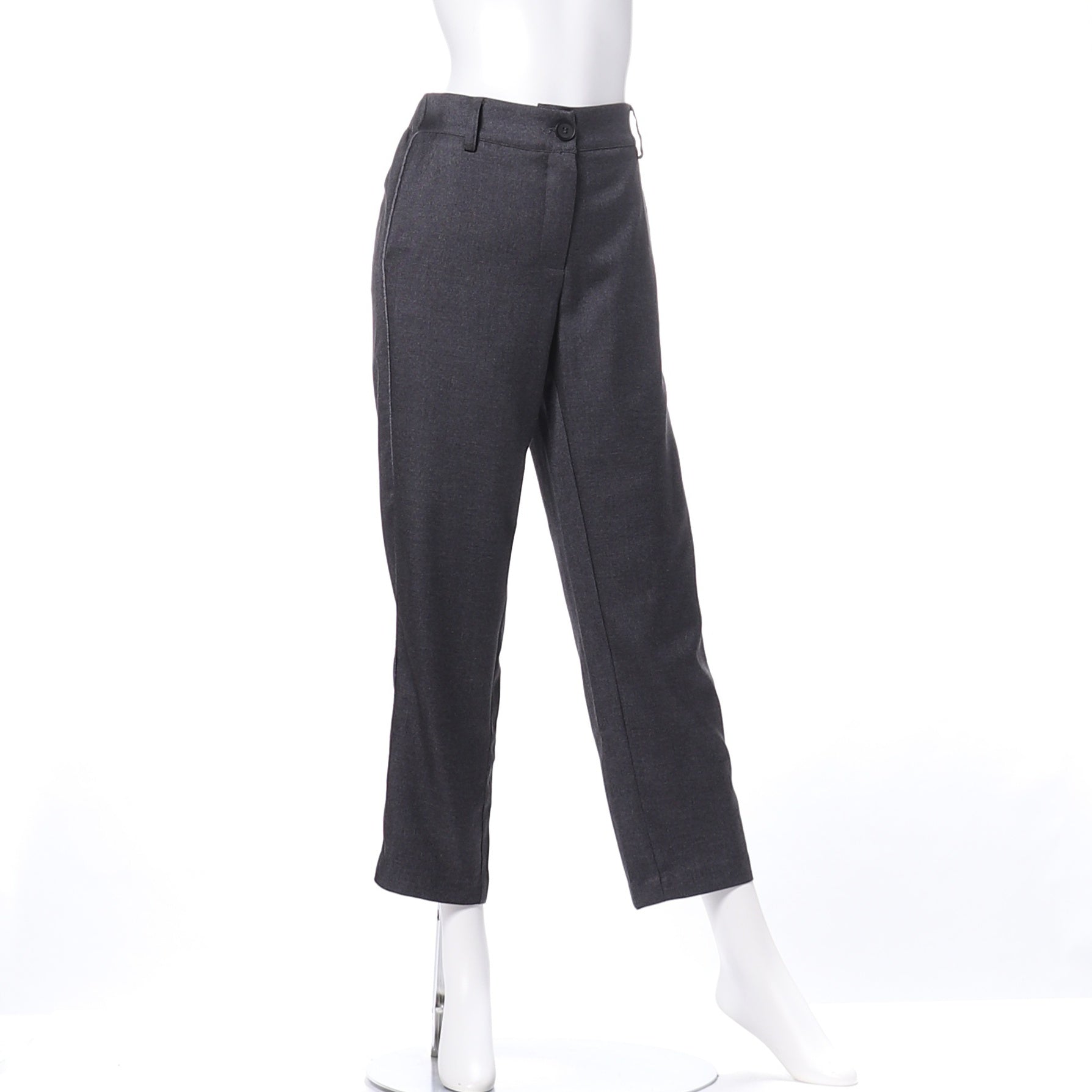 サイドライン入りのテーパードパンツ。 ローゲージニットにフラットシューズを合わせてラフに着るのも良いですし、ボウタイブラウスにヒールパンプスを合わせて綺麗めカジュアルに着るのもいいですね。