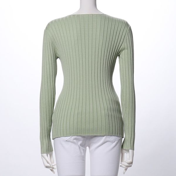 シンプルなデザインのリブニット。フレアスカートを合わせて女性らしく、ワイドパンツを合わせて綺麗めカジュアルスタイルもおすすめです◎