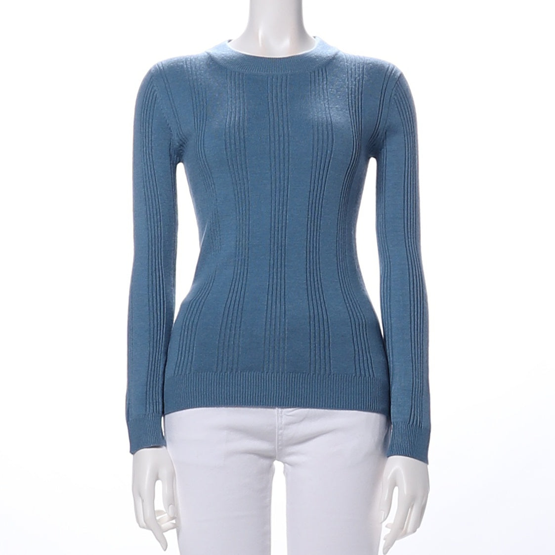 フィット感のあるリブニット。ギャザースカートと合わせて女性らしい着こなしや、ワイドパンツと合わせてカジュアルに着こなすのもおすすめですよ!