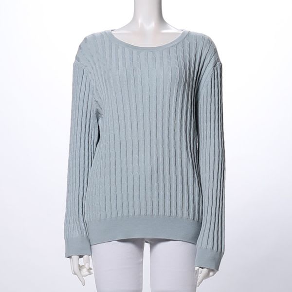 細ケーブル柄クルーニット