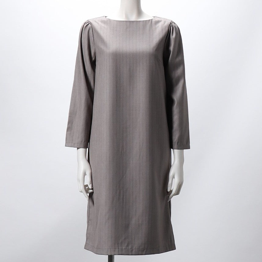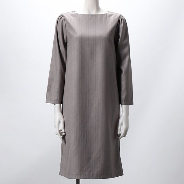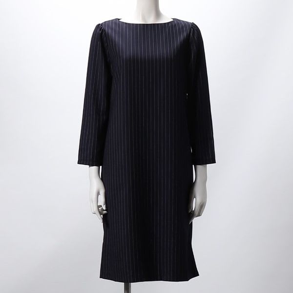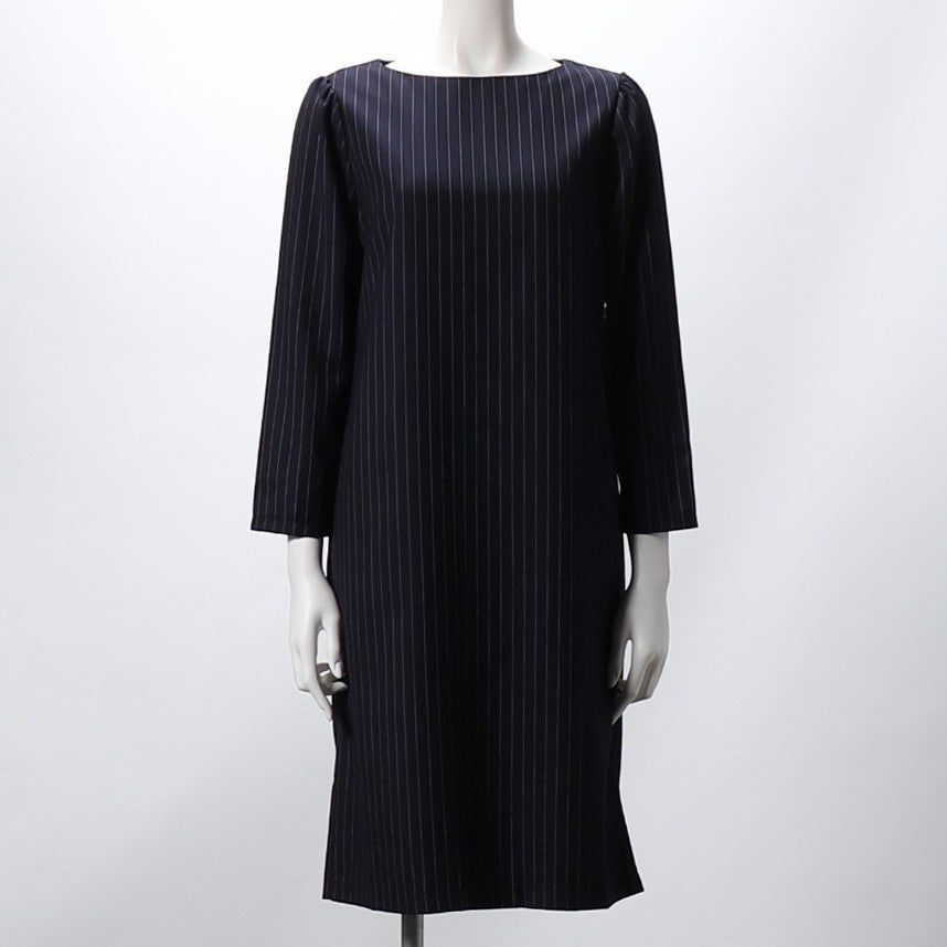 ストライプ柄のワンピース。ブーツと合わせてスタイリッシュに仕上げたり、パンプスと合わせてきれいめに仕上げても良いですね。