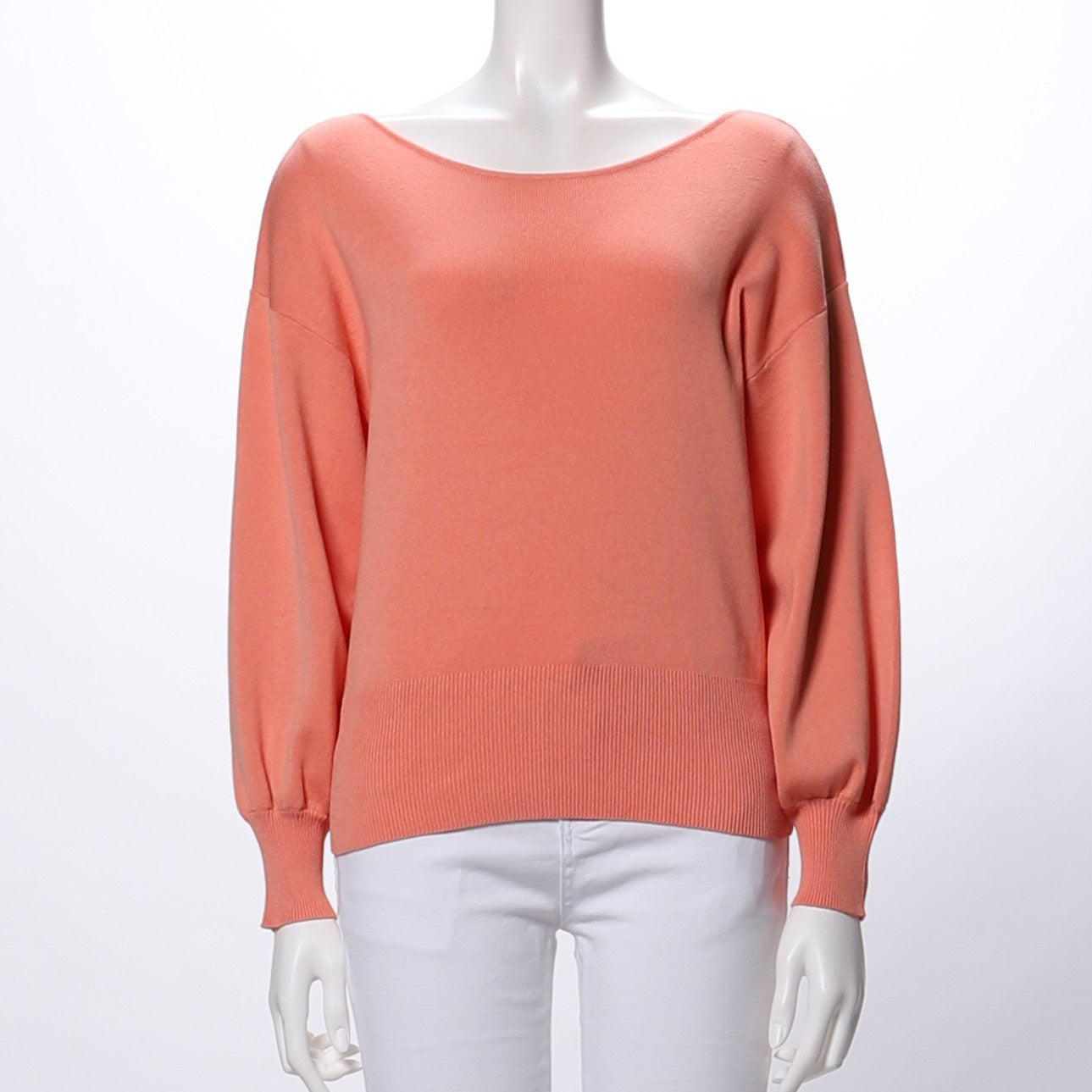 前後2WAYのボリュームスリーブニットは、ネックラインで雰囲気を変えて着回せる1枚。
