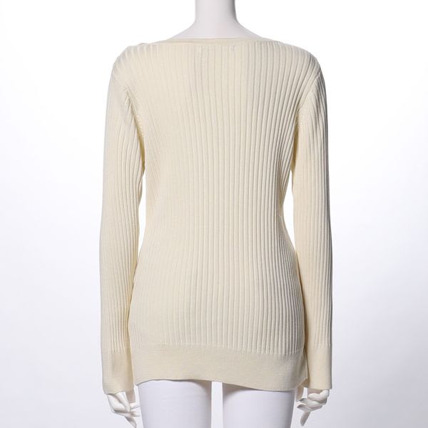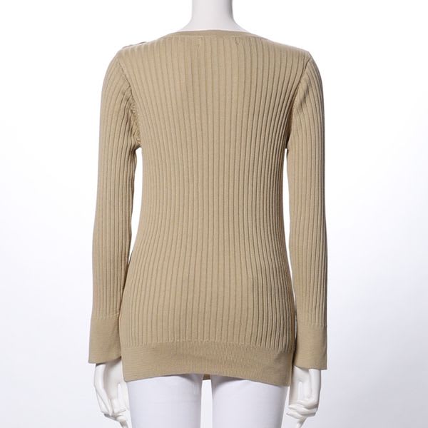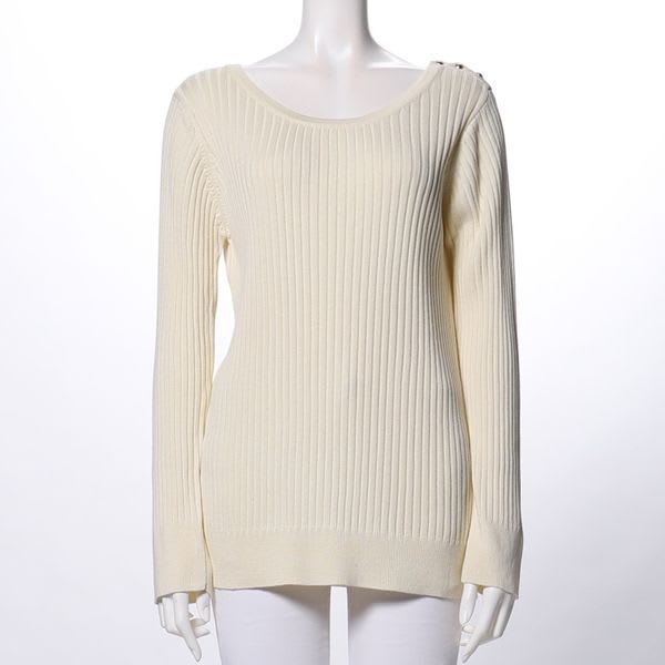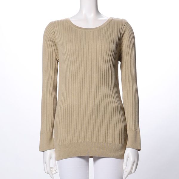 ラウンドネックのリブニット。ストレートパンツと合わせてきれいめカジュアルスタイルにしてみたり、プリーツスカートと合わせてこなれ感のある大人フェミニンなコーデに着まわしてみてもいいですね。