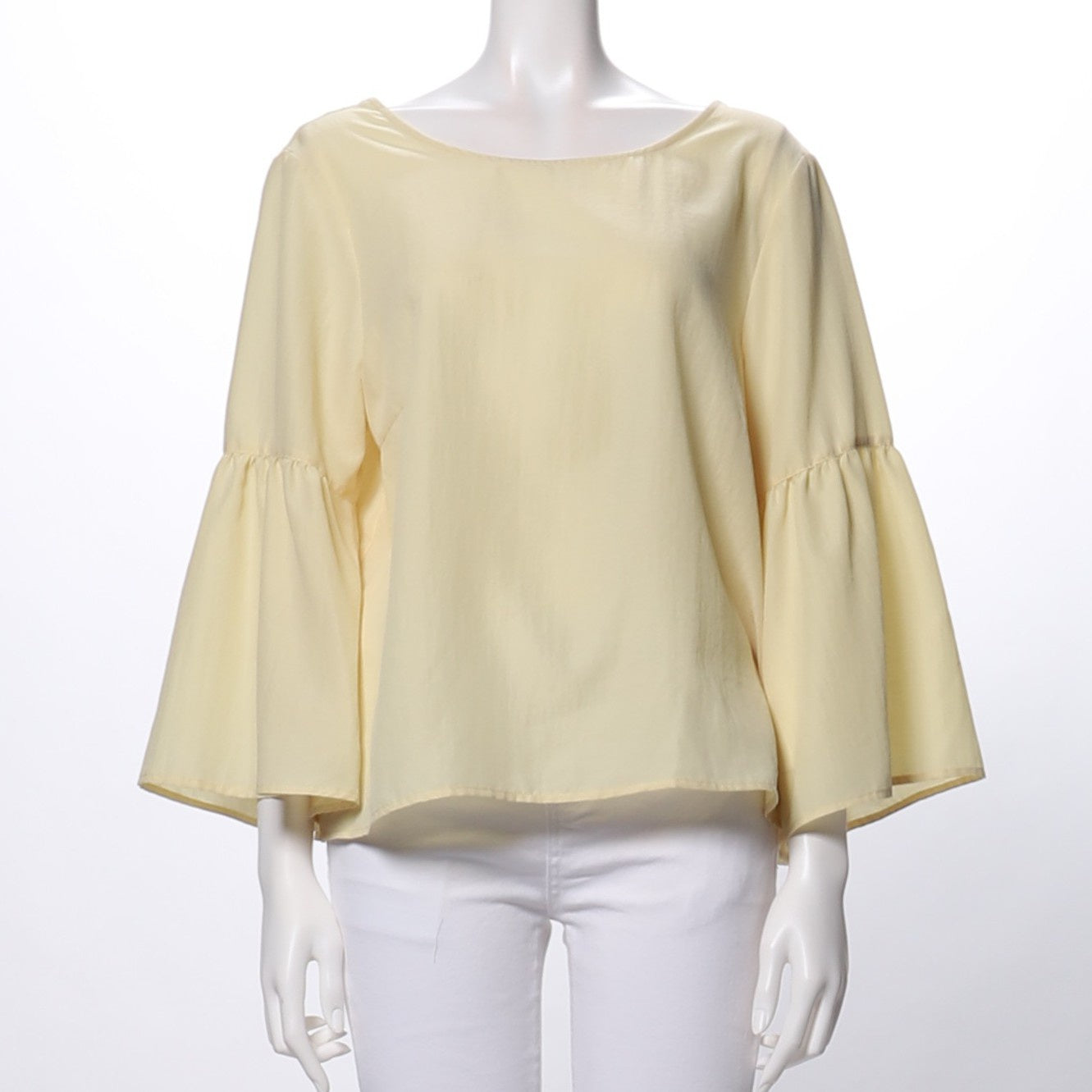バックボタンデザインフレアスリーブブラウス