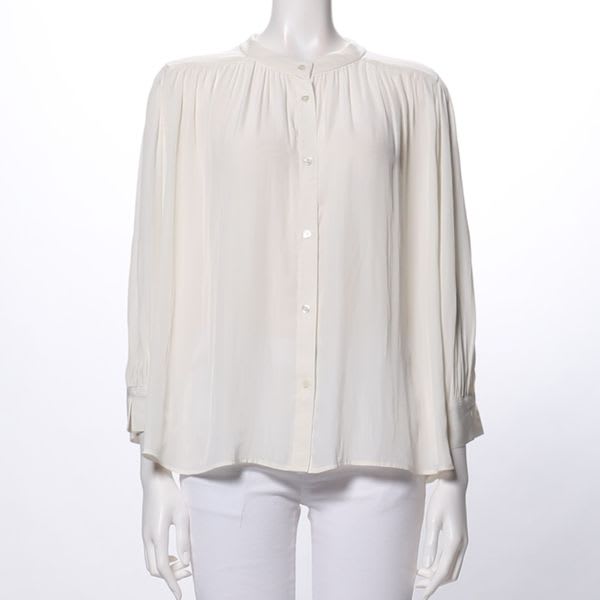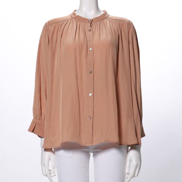 ギャザーデザインフロントボタンブラウス