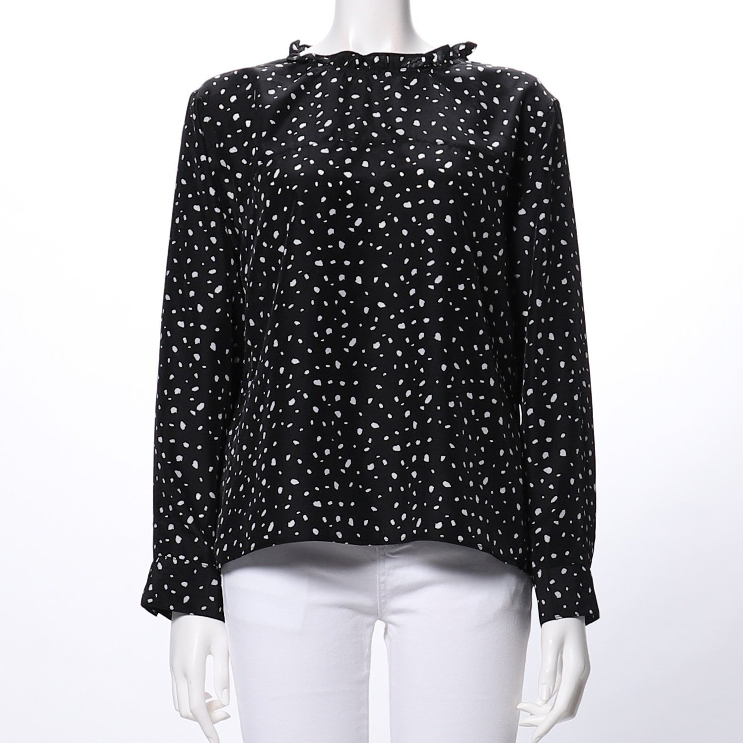 フリルネックがポイントのブラウス。フレアスカートにインしてフェミニンスタイルに、ワイドパンツを合わせてきれいめカジュアルスタイルも良いですね。