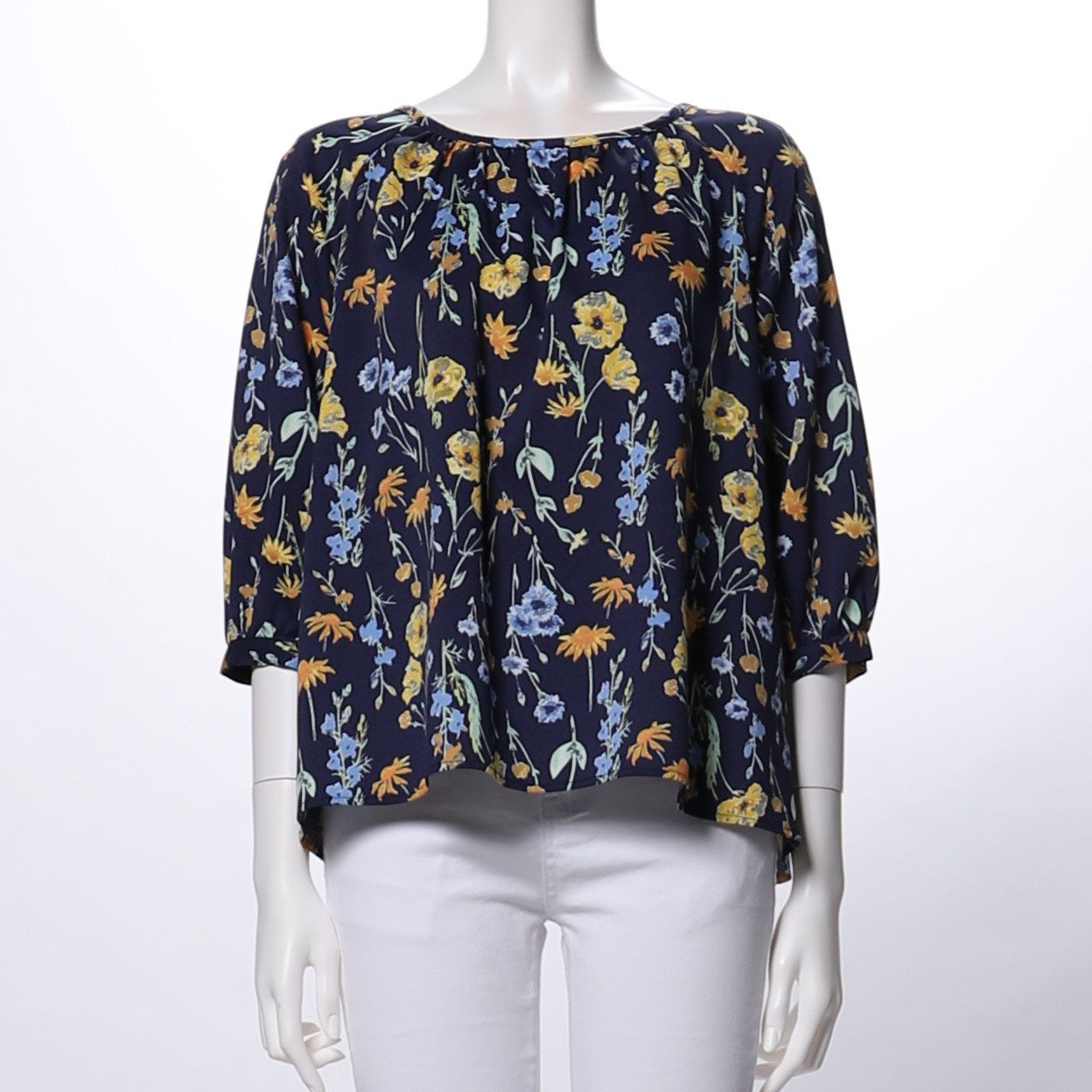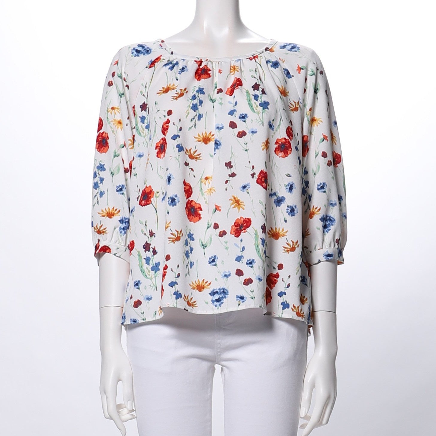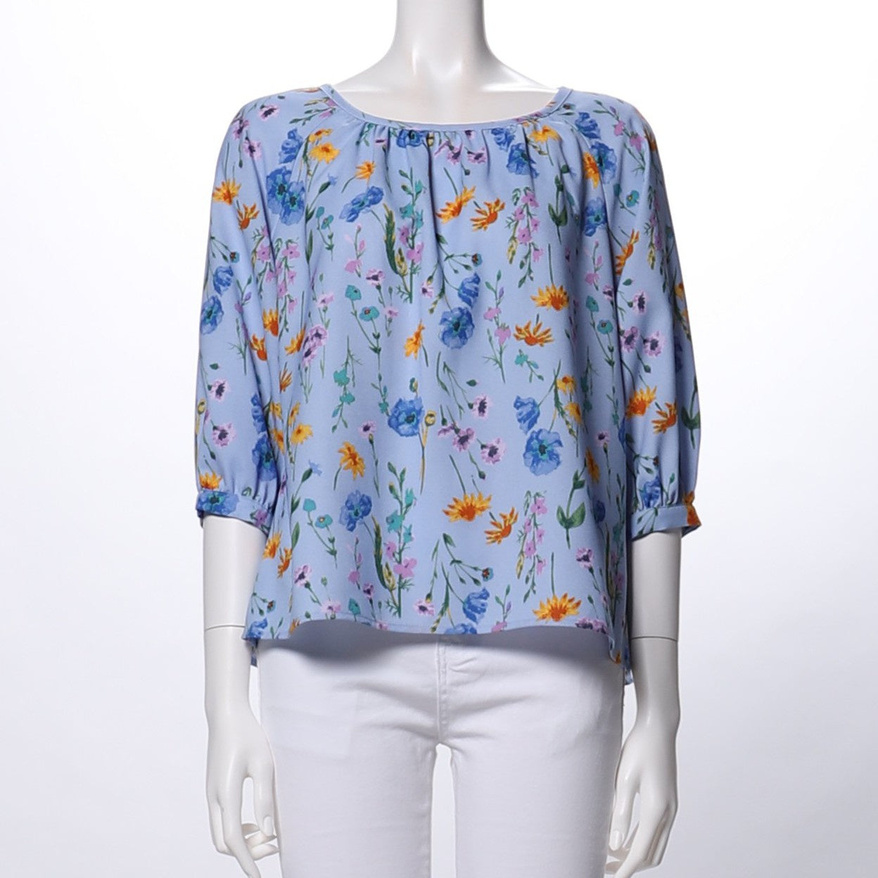 花柄ギャザードネックブラウス