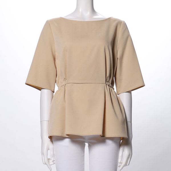 ボートネックのペプラムブラウス。アイラインスカートを合わせて女性らしい着こなしに、スキニーパンツを合わせてきれいめカジュアルスタイルも良いですね。