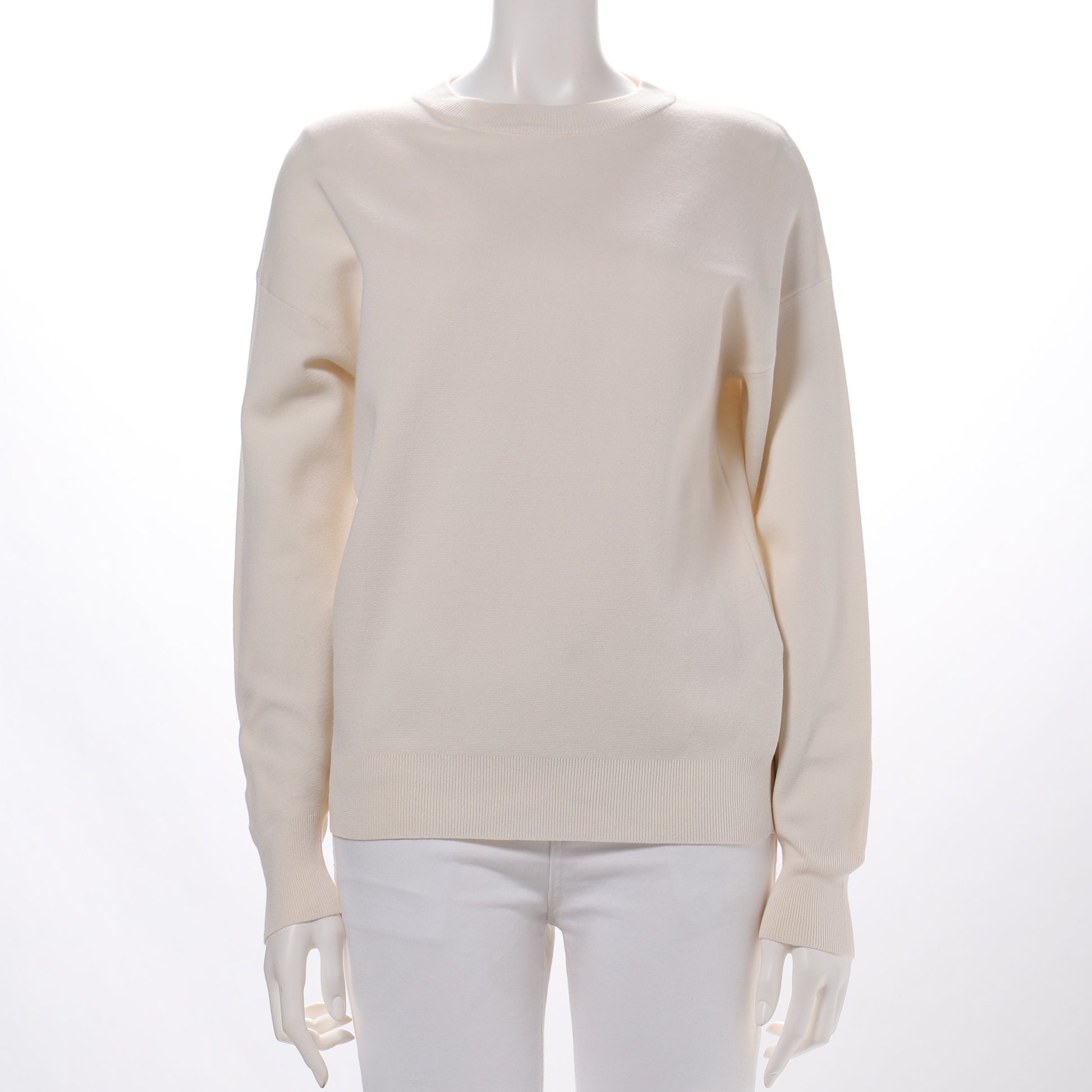 クルーネックニット。プリーツスカートを合わせて女性らしい着こなしに、フレアパンツを合わせてゆるっとしたラフなスタイルも良いですね。