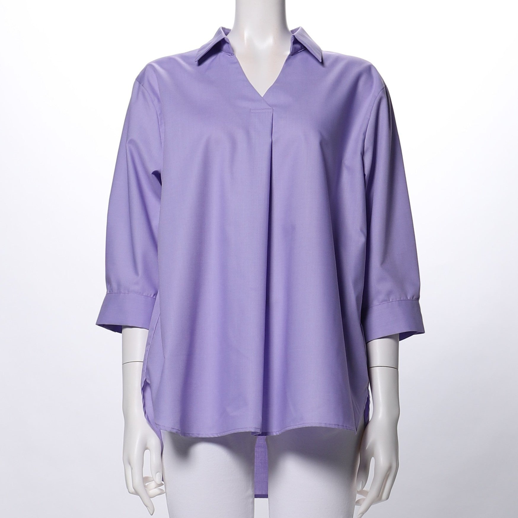 「キレイなパープルで、気分が上がりました。スキッパーシャツ、着やすいです。襟がきちんと感を演出し、丈感はカジュアルにも着られで、いろいろなテイストで楽しめました。」 「パープル系は好きですが、この色は初めてでした。あまり似合うとは思いませんでしたが、紺の丈が短めのパンツと合わせて着ました。着やすかったですが、丈が長いのでうまく着こなせませんでした。」 「生地やカットがサラリとしすぎていたので、なんとなく安っぽく感じるところもあったがとても好きな色で良かった。」 「白のフレアスカートに合わせて着ました!なかなか買わない色のシャツでしたが綺麗でした。」 「自分のもっている、ベージュのパンツと合わせて、オーバーブラウス的に着ました。」