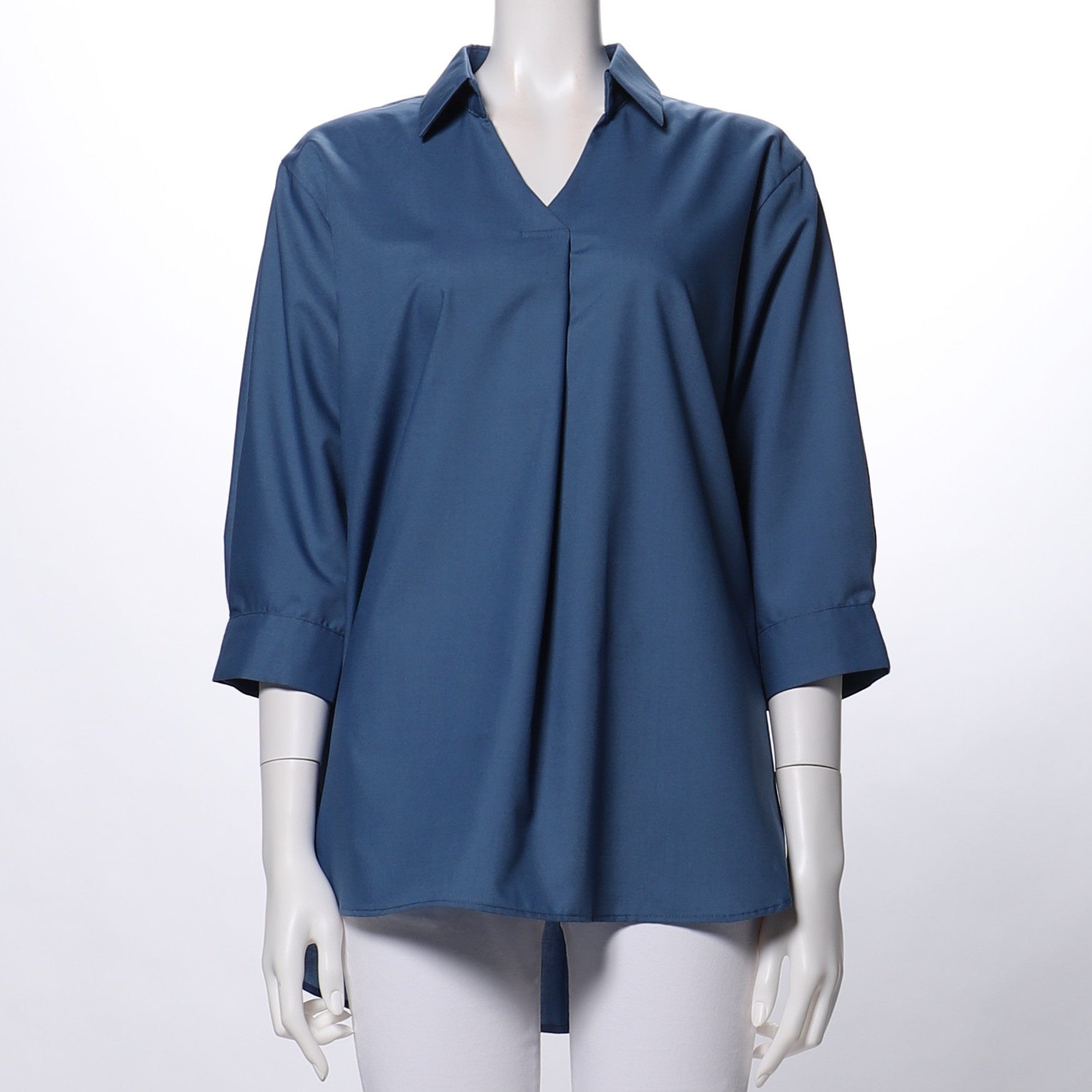 程よいゆったり感がポイントのスキッパーブラウス。 テーパードパンツを合わせてすっきりと着こなして、プリーツスカートを合わせて休日のお出かけスタイルにも◎