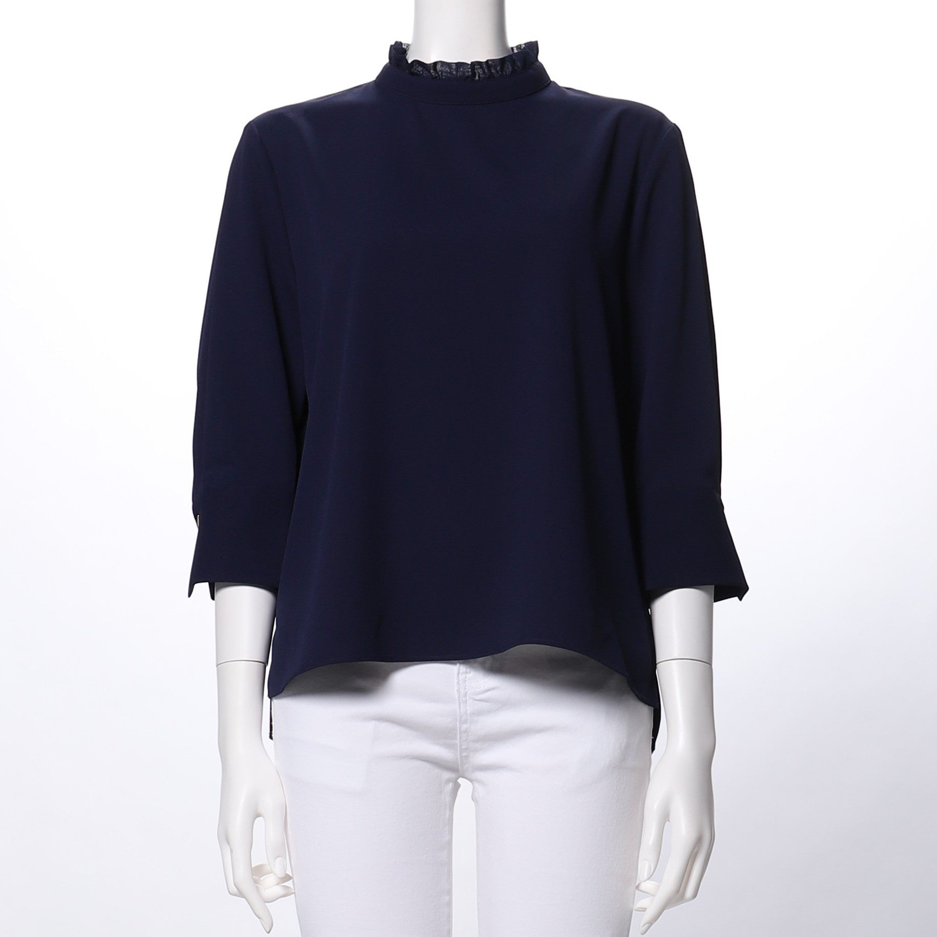 フリルがポイントのスタンドカラーブラウス。花柄のフレアスカートを合わせてフェミニンスタイルに、テーパードパンツを合わせてきちんと感のあるスタイルも良いですね。