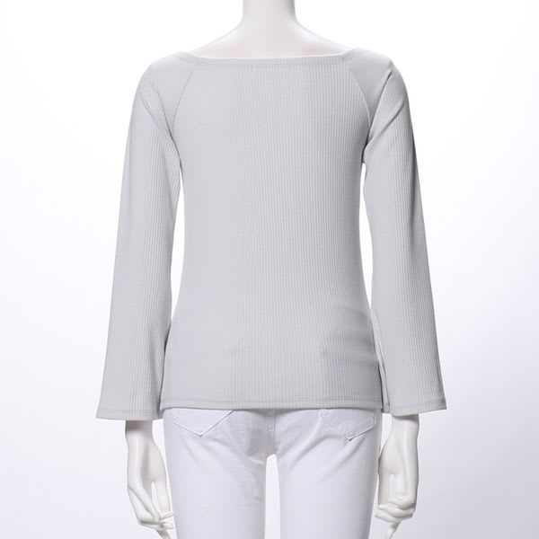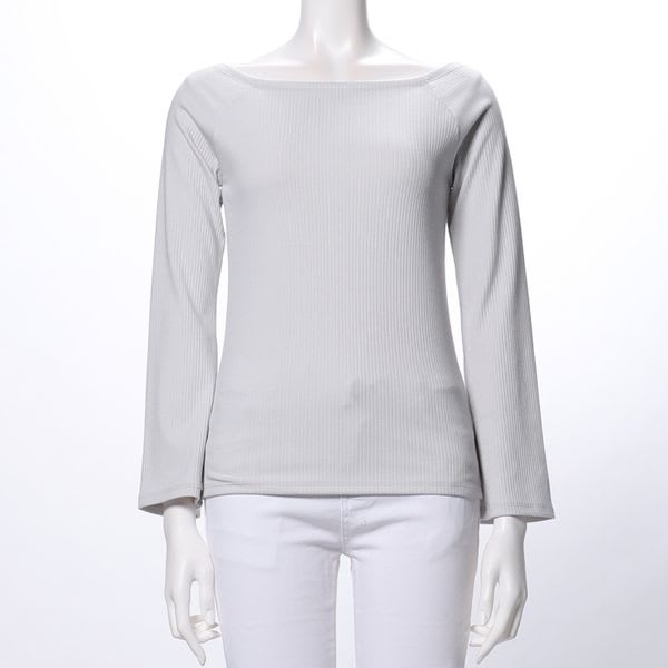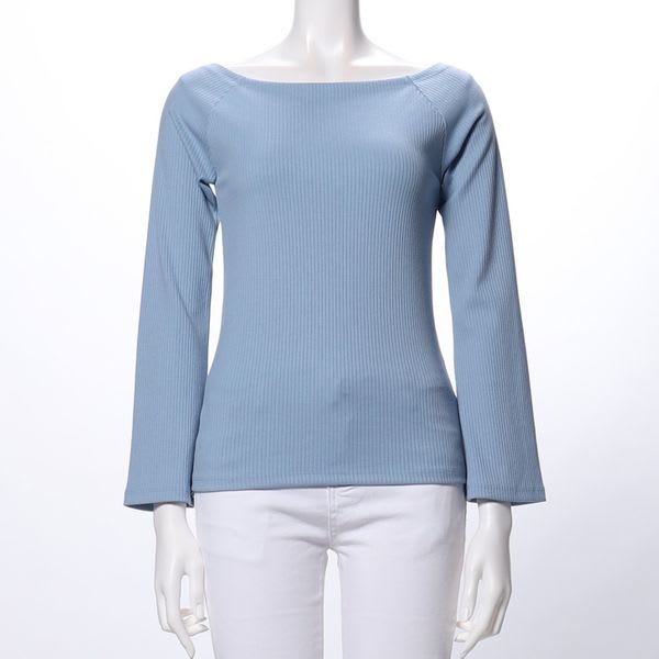 バトーネックニット。ハイウエストワイドパンツを合わせてシックな印象のスタイルに、フレアスカートを合わせてきれいめカジュアルスタイルも良いですね。