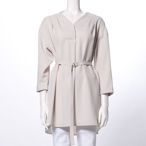 肩のタックが立体感を出してくれるDカンベルト付きのVネックブラウス。ワイドパンツを合わせてカジュアルに、テーパードパンツを合わせてかっこよく着こなすのもいいですね。