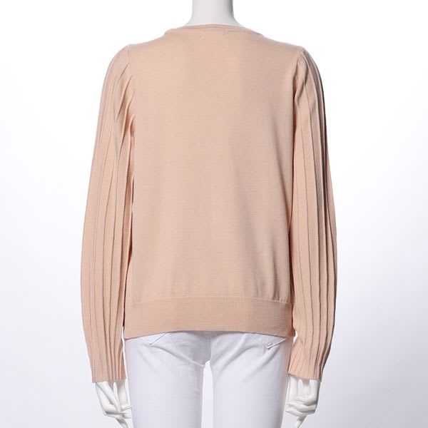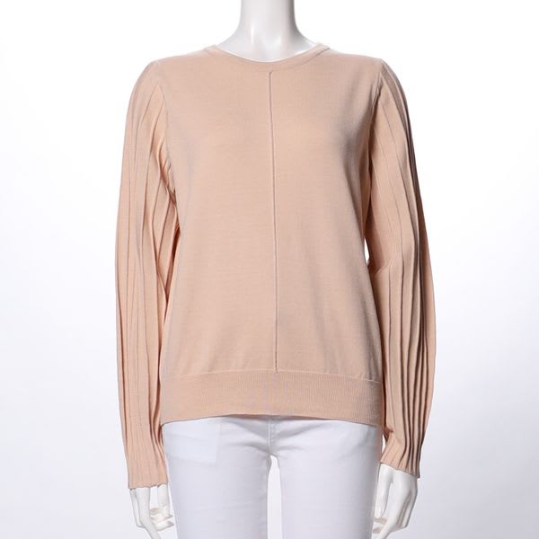 袖のプリーツが特徴的なニットプルオーバー。フレアスカートに合わせてレディライクな着こなしに、ワイドパンツを合わせてカジュアルに着てもいいですね。