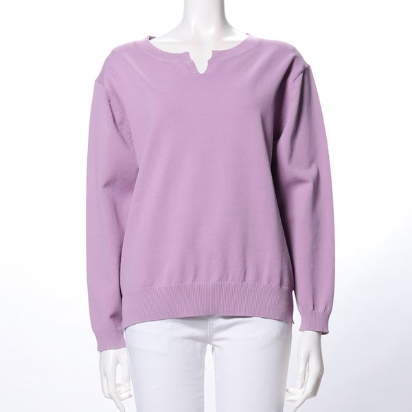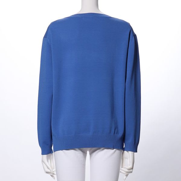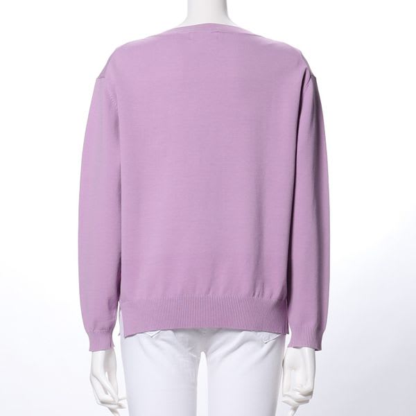 オープンフロントニット。フレアパンツと合わせて大人カジュアルスタイルに着こなしたり、開いた首元にアクセントでネックレスをのぞかせるのもおすすめですよ。