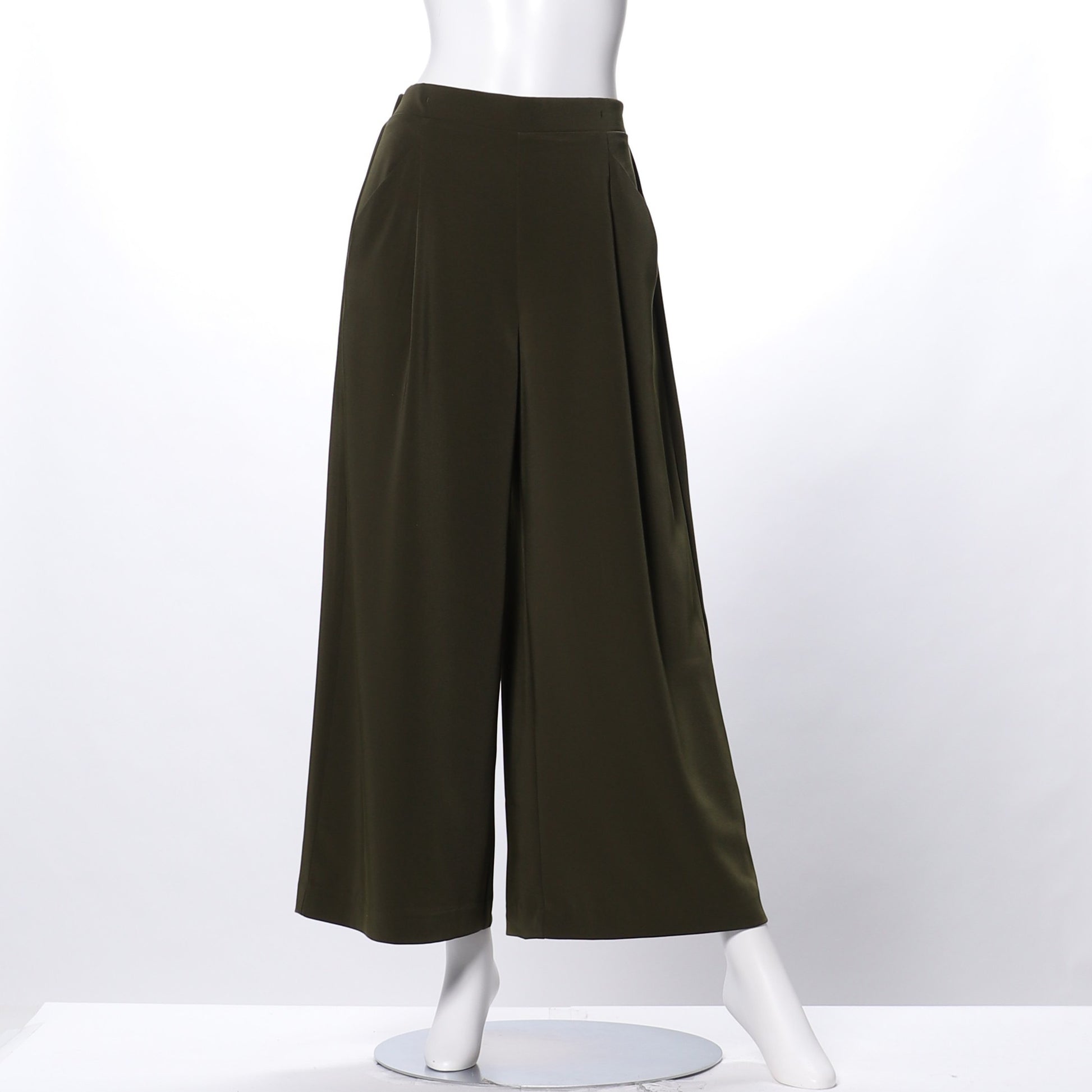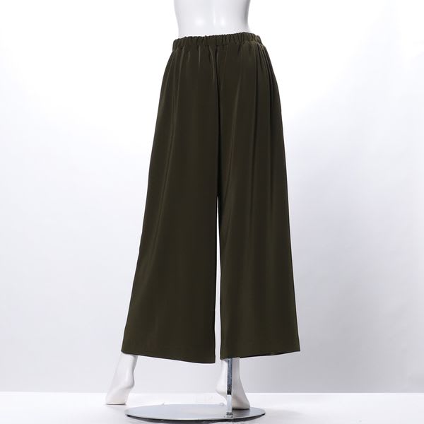 ウエストゴムで履きやすいワイドパンツ。スタンドカラーブラウスを合わせて女性らしいコーディネートに、ボリュームスリーブニットを合わせてカジュアルに着こなしてもおすすめです。