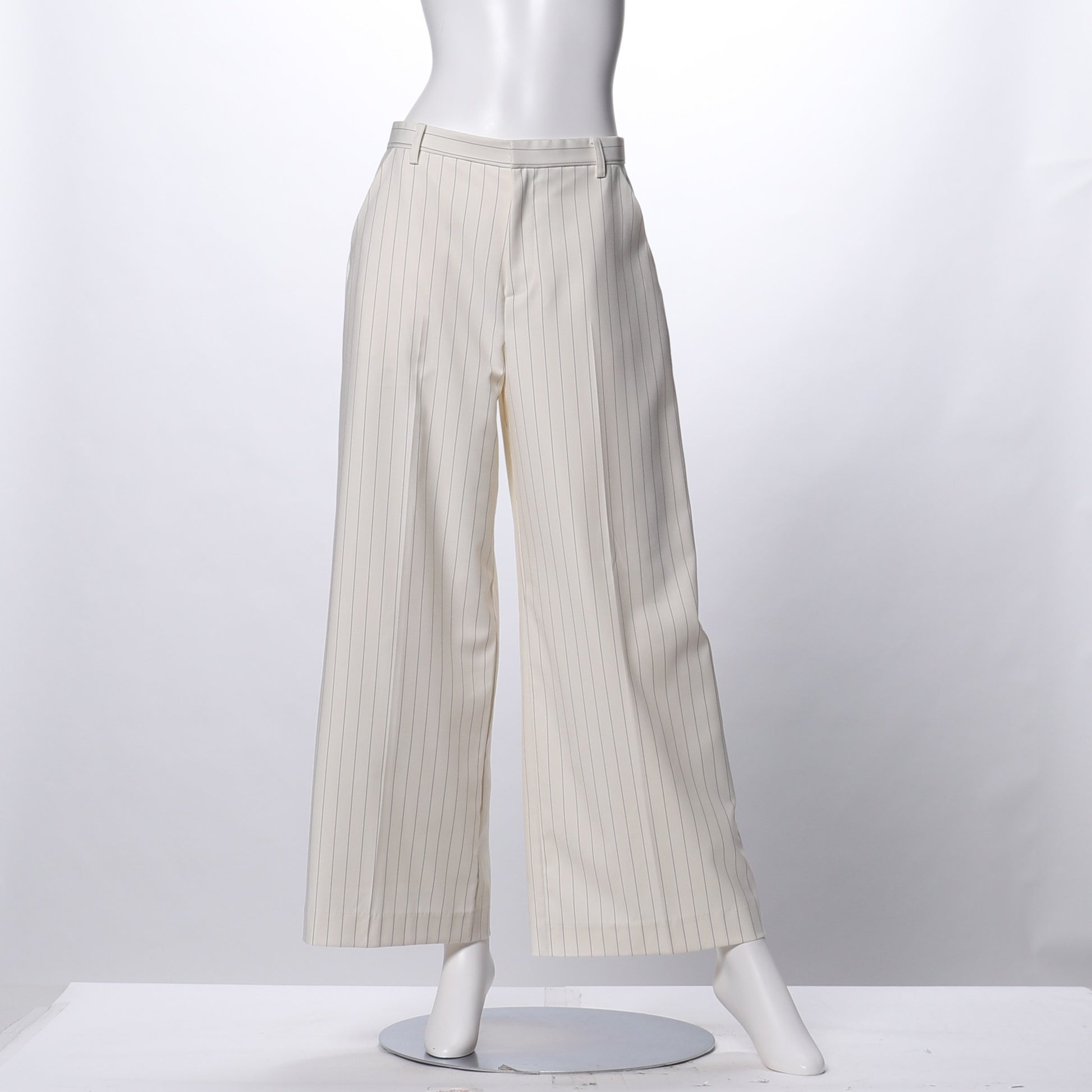 ストライプ柄ワイドパンツ。ボウタイブラウスを合わせてきちんと感のあるコーディネートに、ルーズなプルオーバーを合わせてラフに仕上げるのもおすすめです。