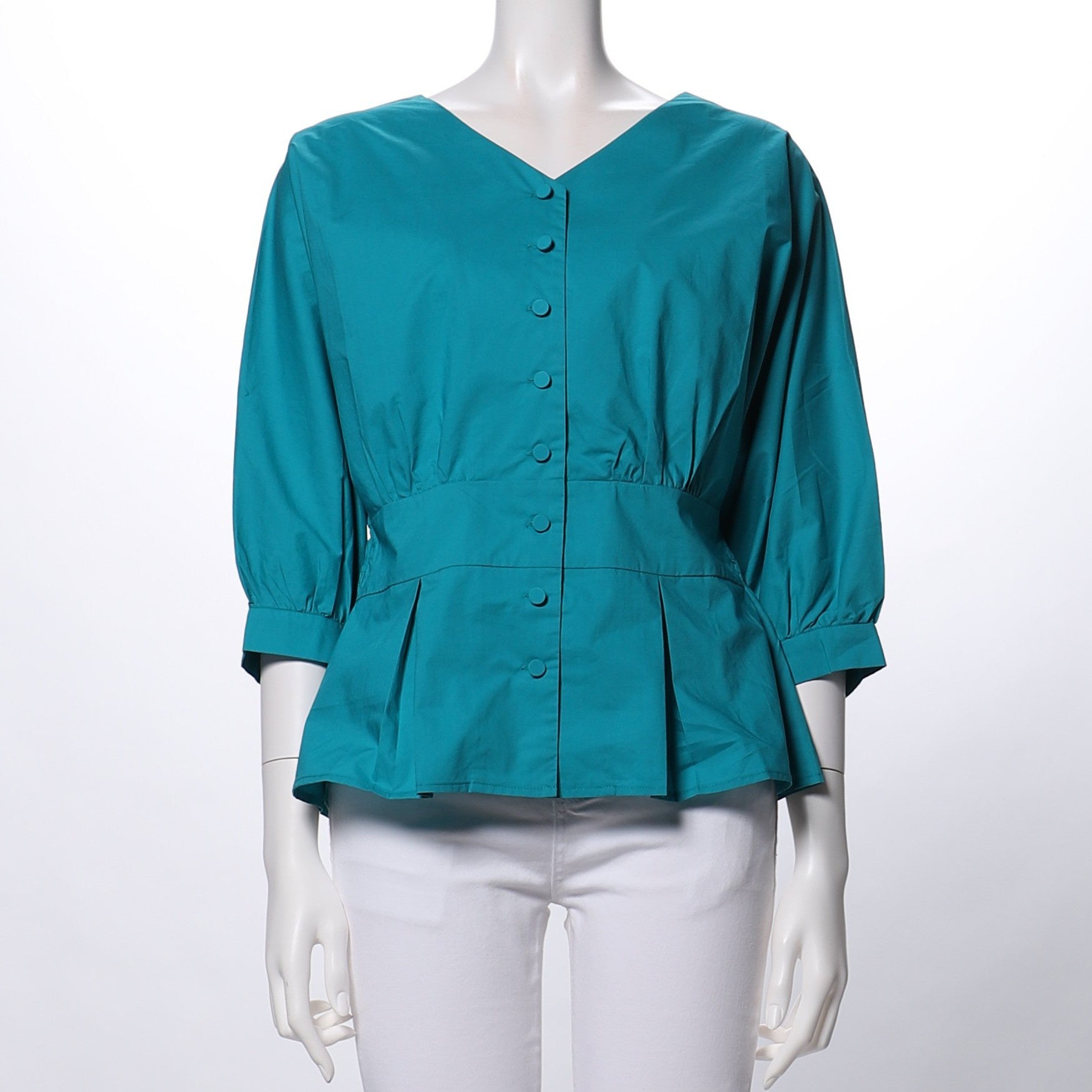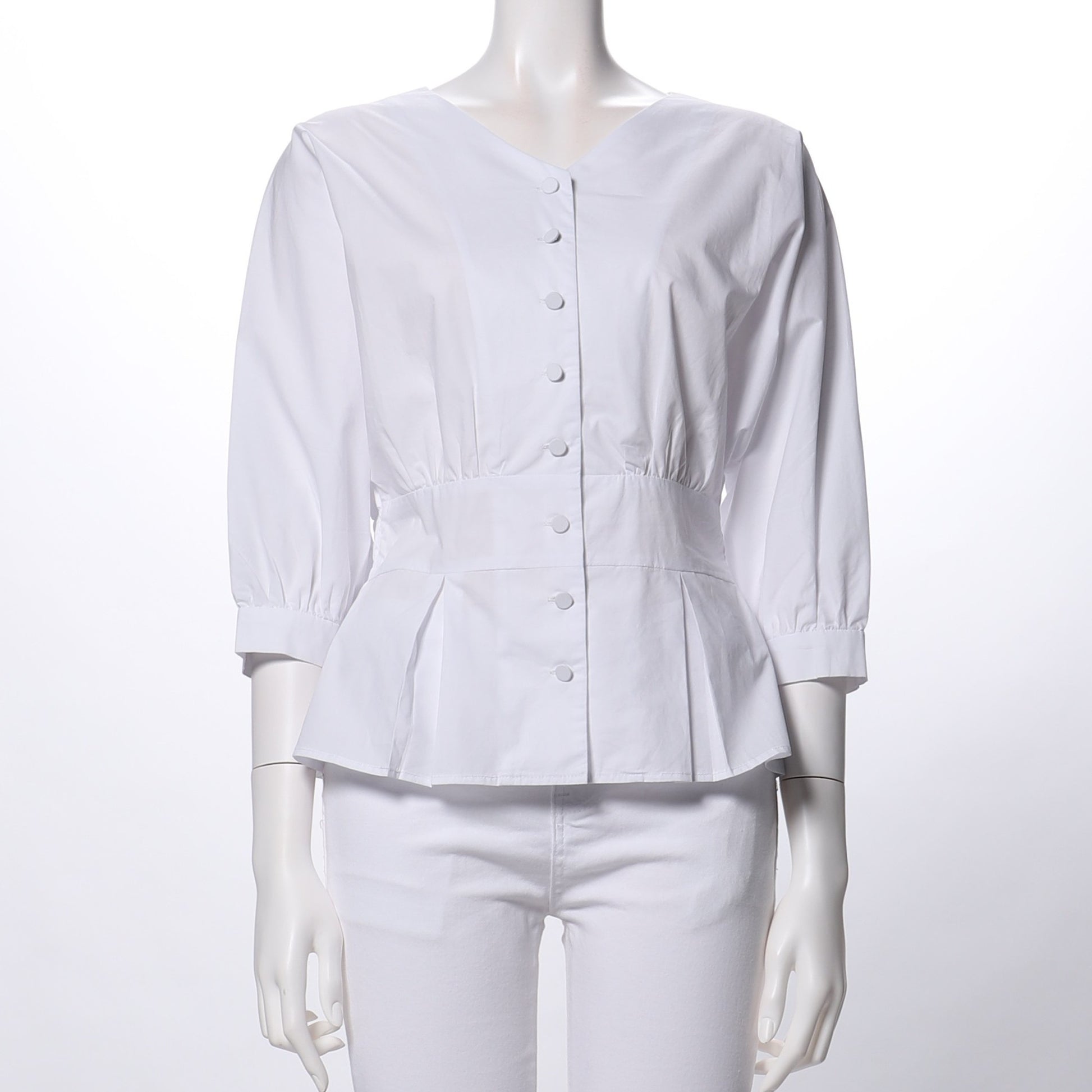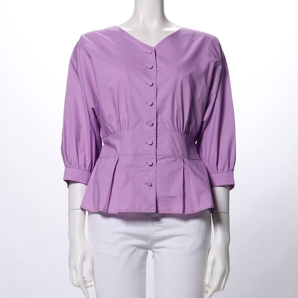 フロントボタンペプラムブラウス