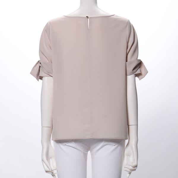 袖口のリボンデザインがポイントのブラウス。テーパードパンツに合わせてスッキリとした着こなしに、フレアスカートに合わせてレディライクなスタイルも素敵ですよ◎