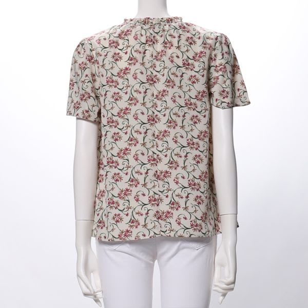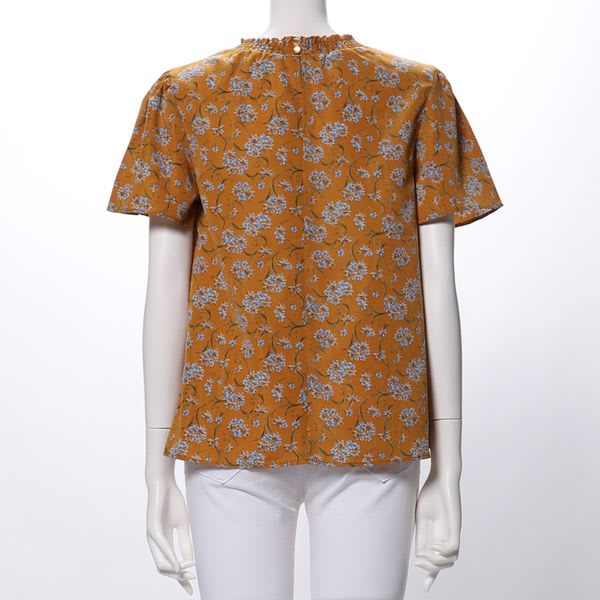 衿シャーリング花柄ブラウス