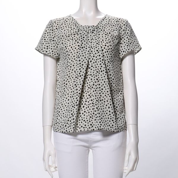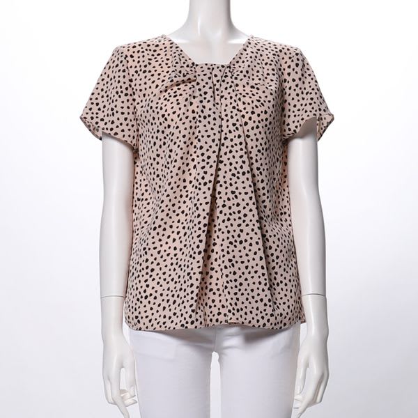 タックデザインネックの総柄ブラウスは、デニムパンツを合わせてカジュアルスタイルに、フレアスカートを合わせてフェミニンスタイルも素敵ですよ。