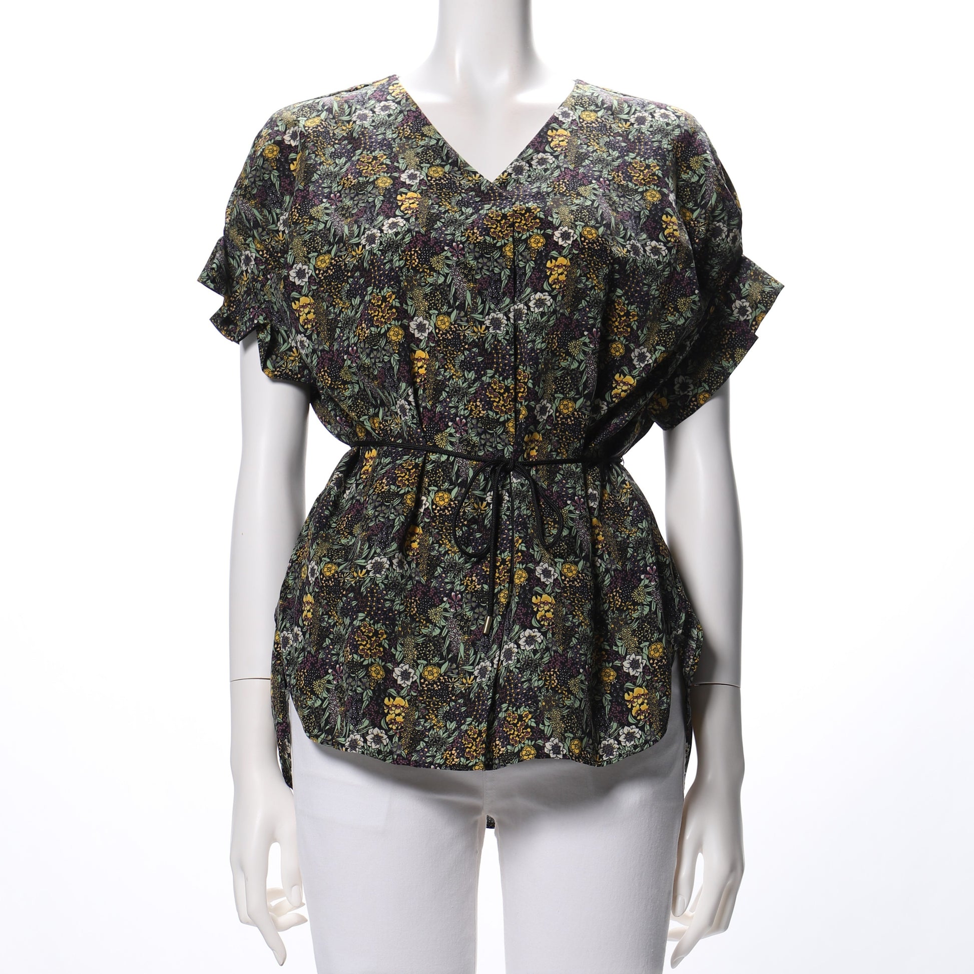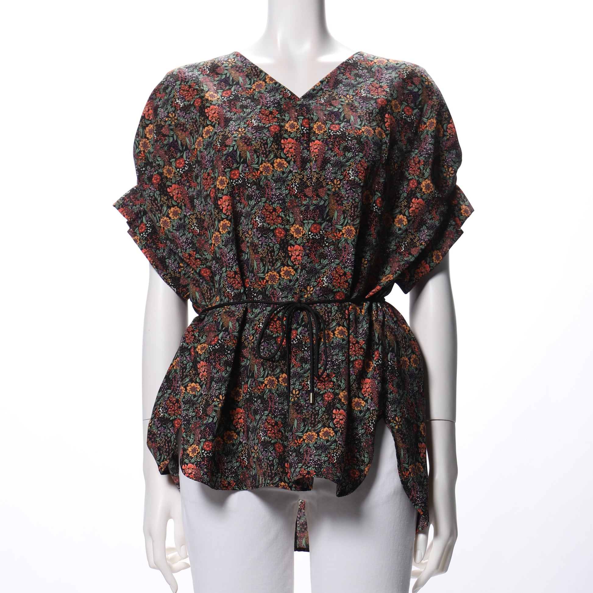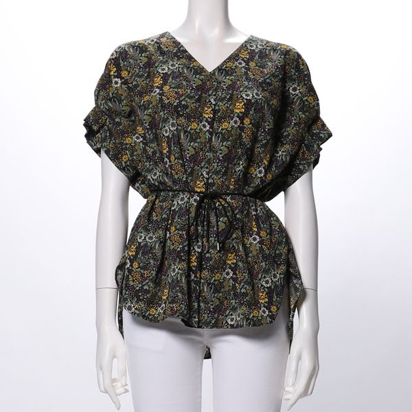 リボンベルト付きの小花柄ブラウス。タイトスカートとパンプスを合わせてレディライクなスタイルに、デニムパンツとスニーカーを合わせてカジュアルスタイルも素敵です◎