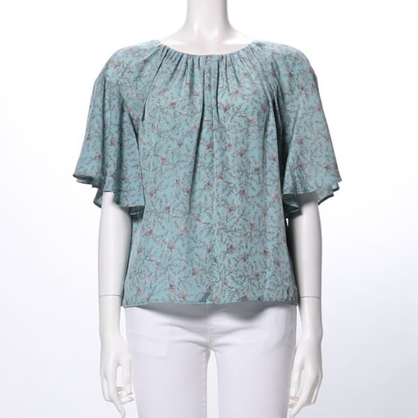 バックデザインがポイントの小花柄ブラウスは、タイトスカートを合わせてレディライクな着こなしや、ワイドパンツを合わせてラフ感のある着こなしも◎ですね。