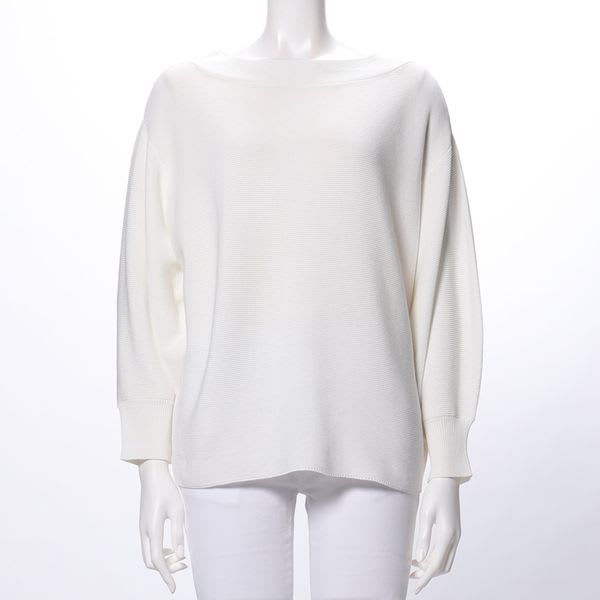 ボートネックのニットプルオーバー。プリーツスカートと合わせて女性らしいスタイルにしてみたり、テーパードパンツと合わせてきれいめカジュアルスタイルに着回してみてもいいですね。