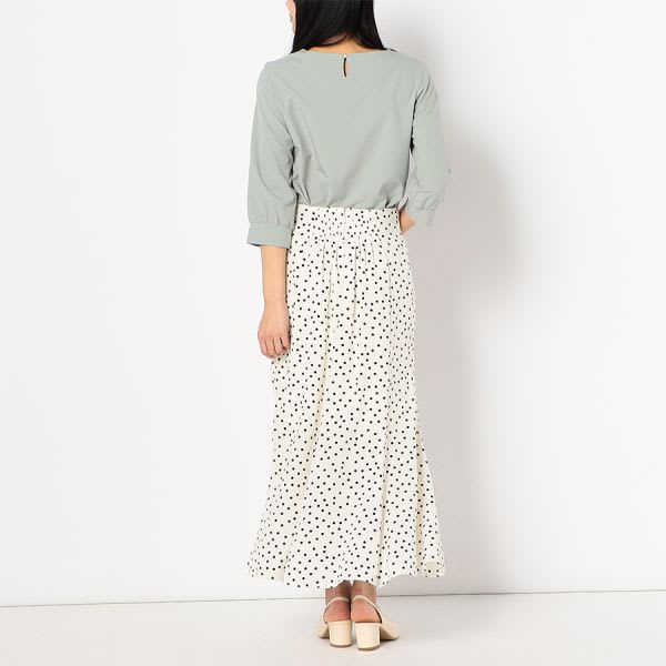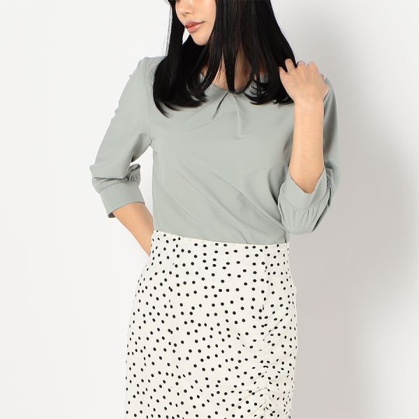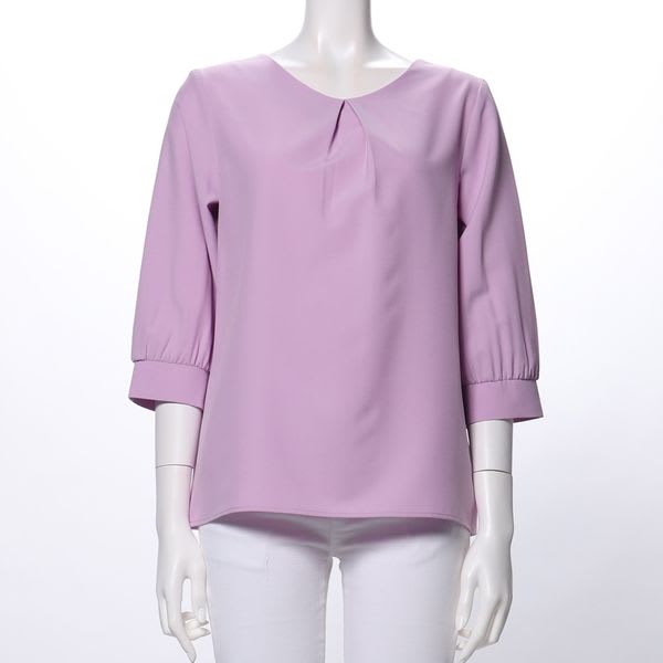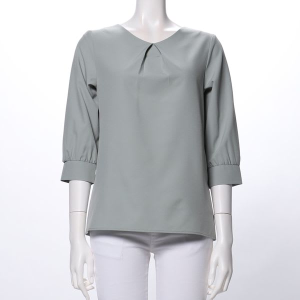 ネックラインに入ったタックデザインがポイントのブラウス。