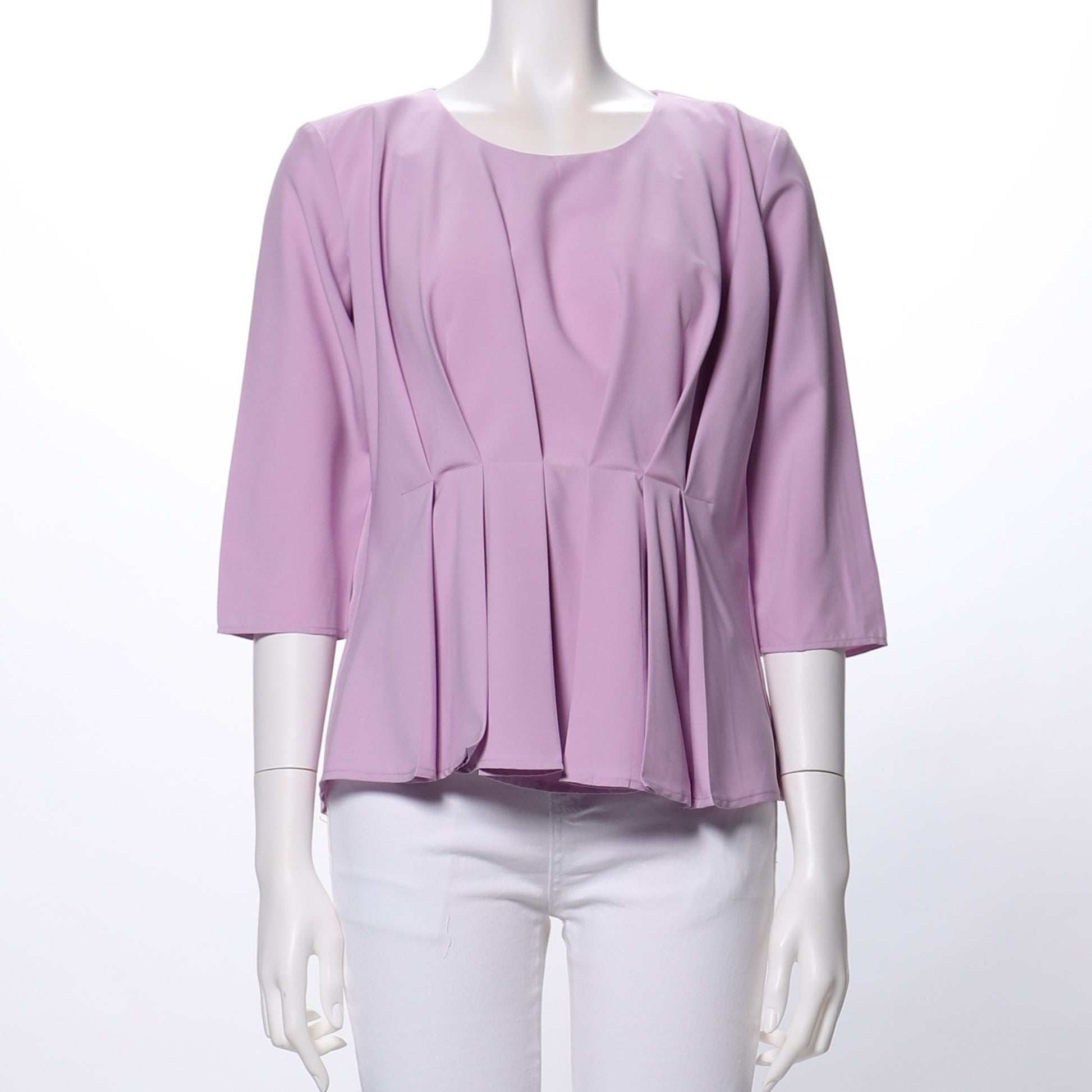 ペプラムデザインのラウンドネックブラウス。タイトスカートを合わせてレディライクコーデや、ワイドパンツを合わせて甘辛ミックスコーデも良いですね!